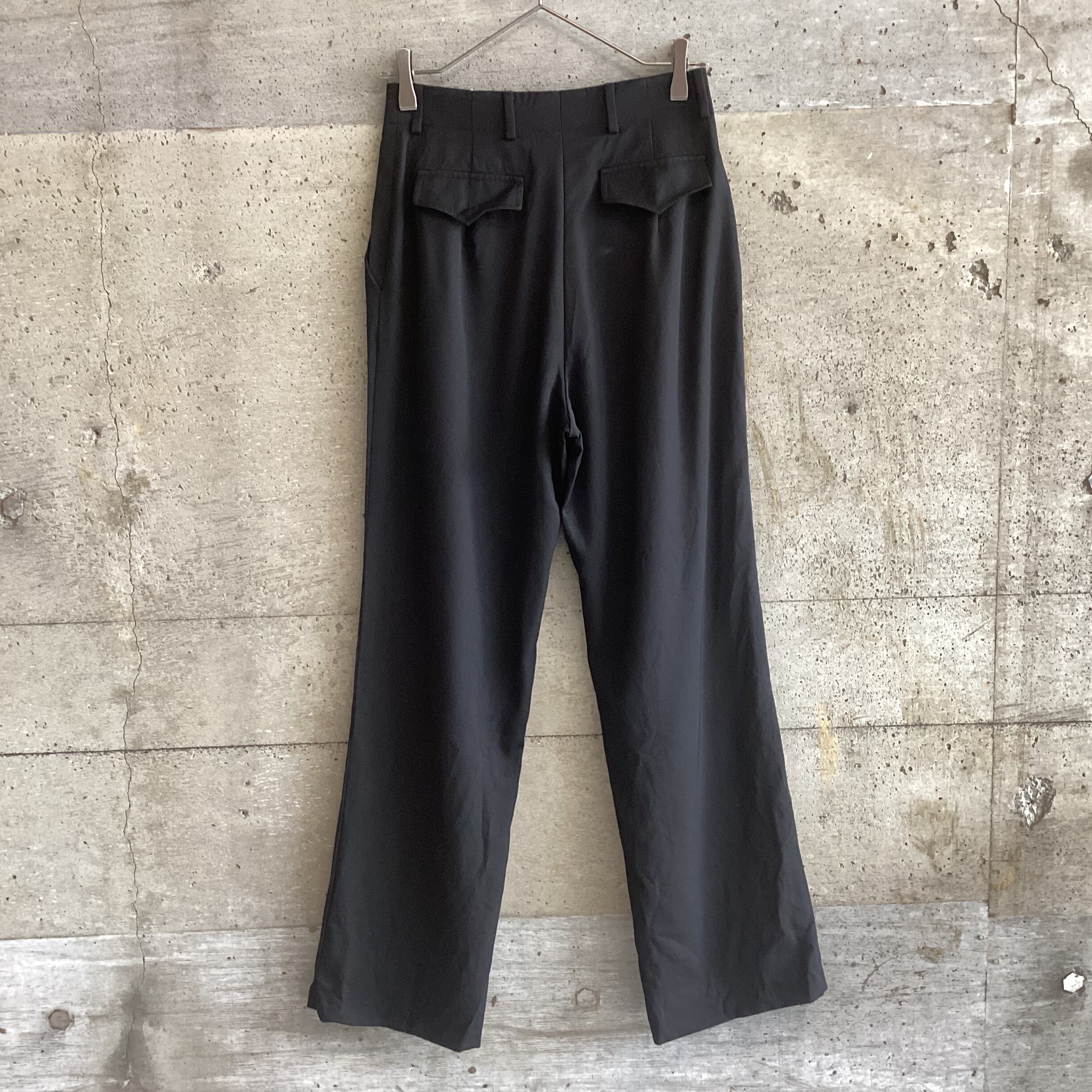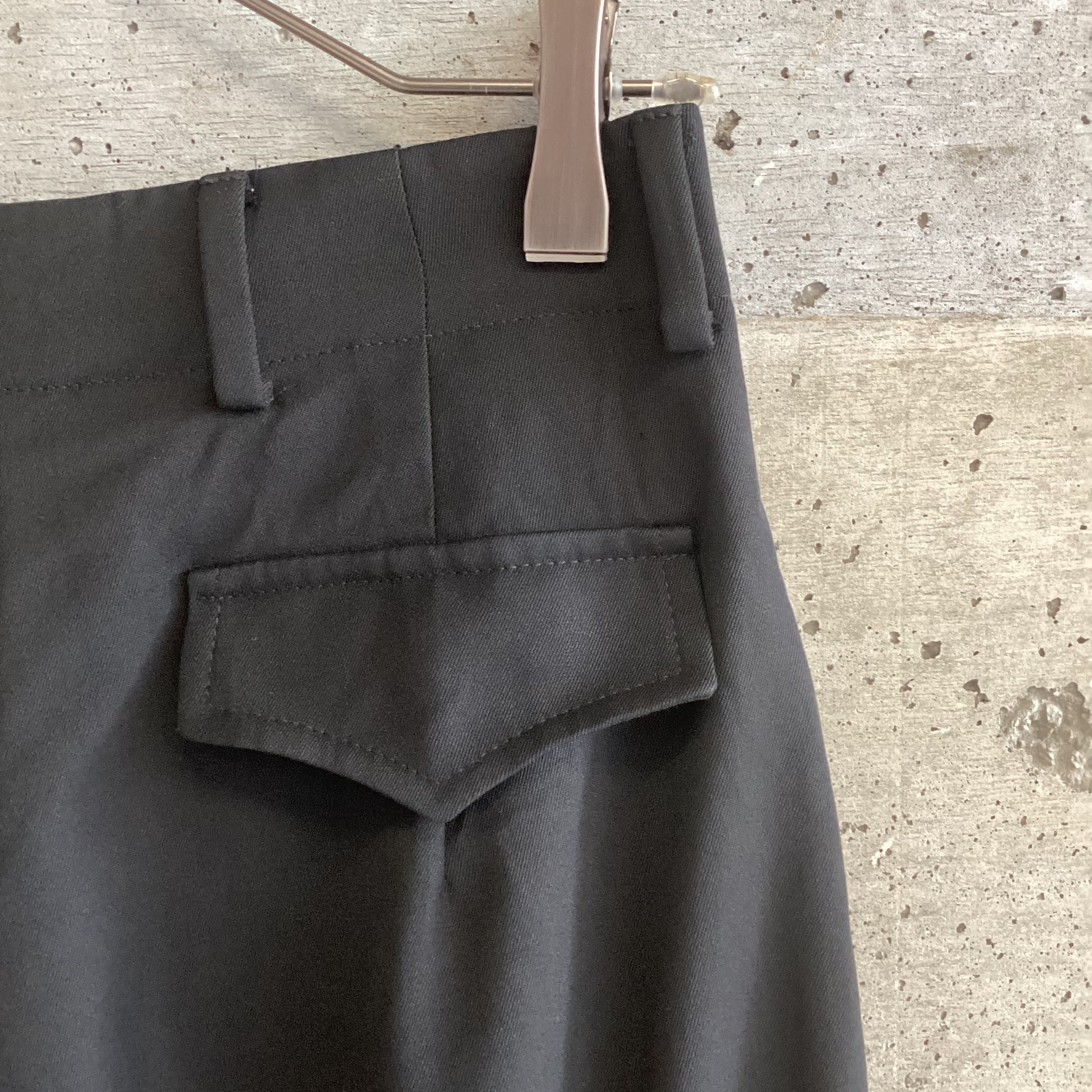 裏地はなく、テロっとした高級感のあるスラックスに膝当てがついているのがカジュアルな雰囲気になり素敵です。