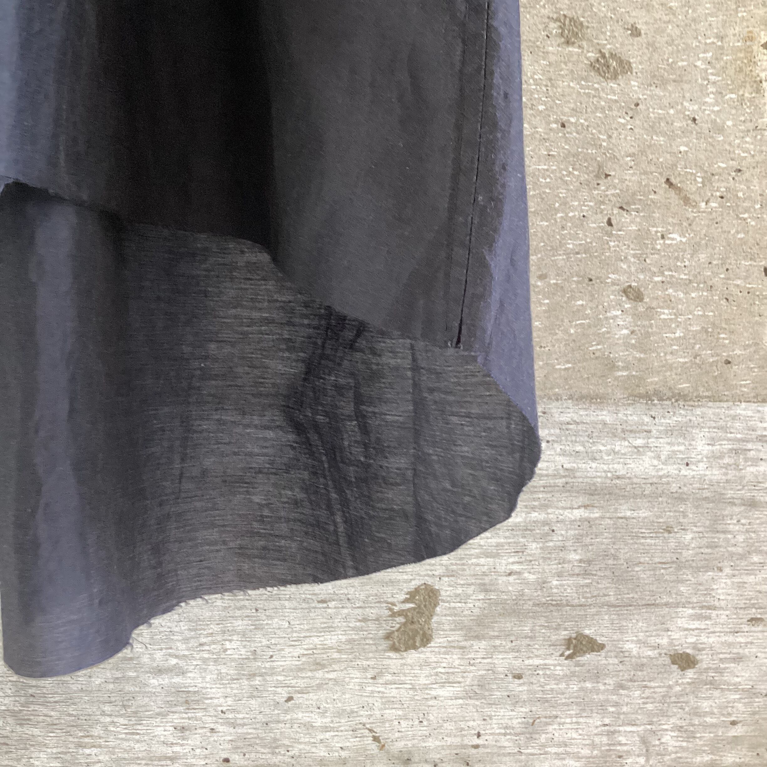 裾は切りっぱなしで前あがりのラインですが、元からのデザインではなくリメイクされているようです。