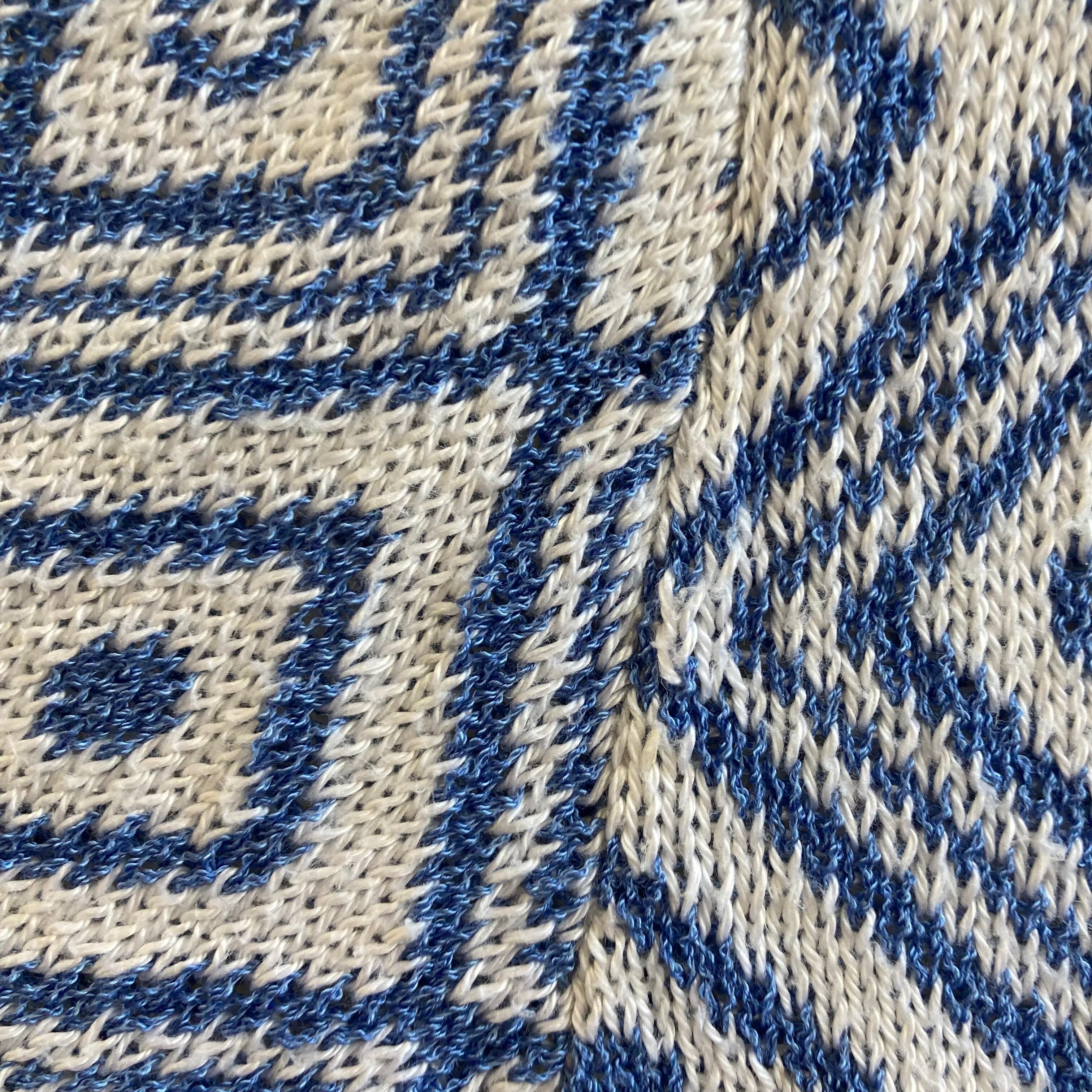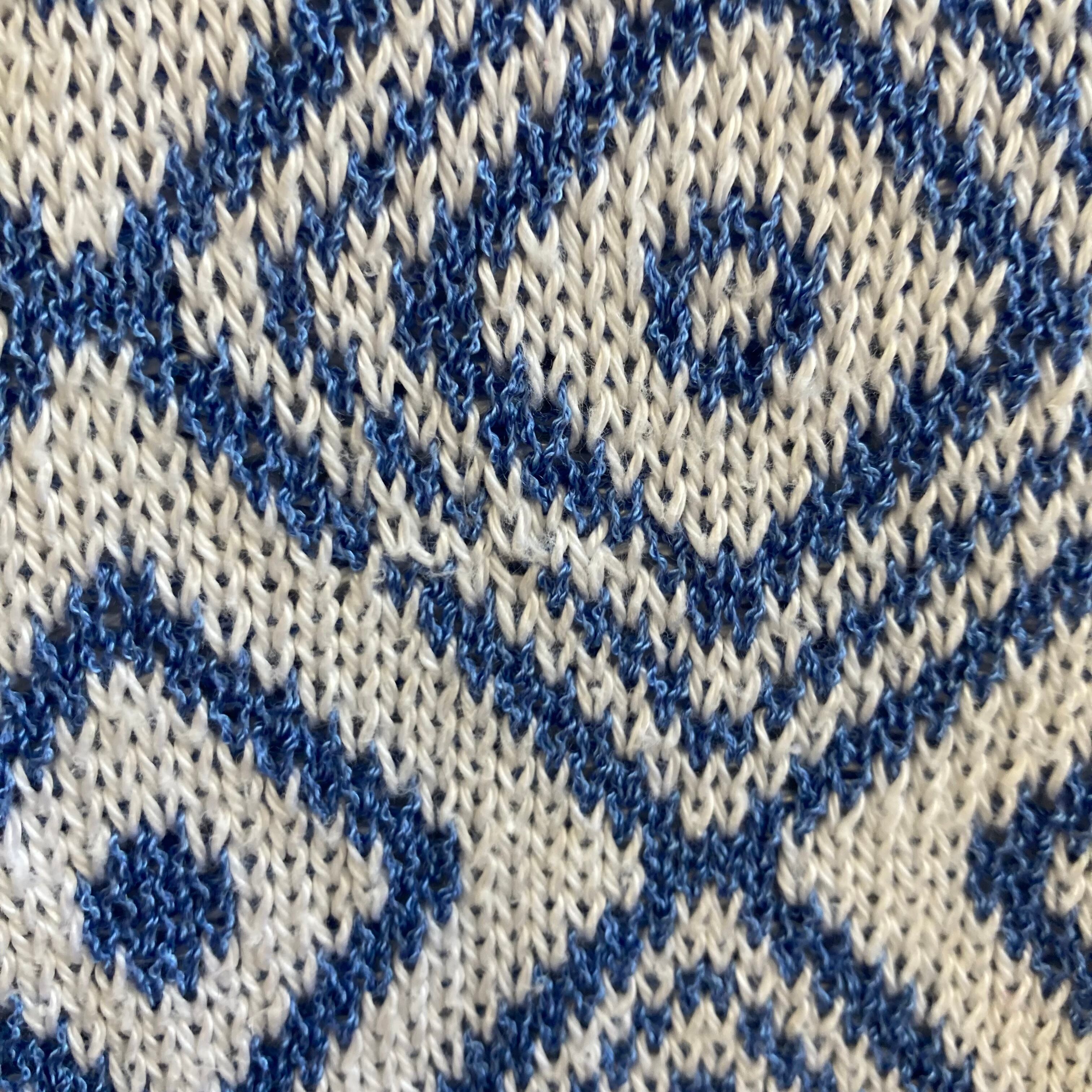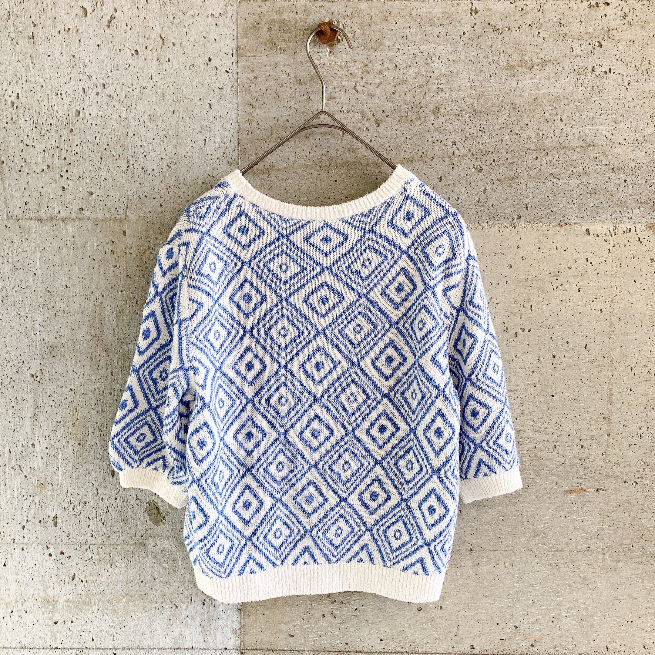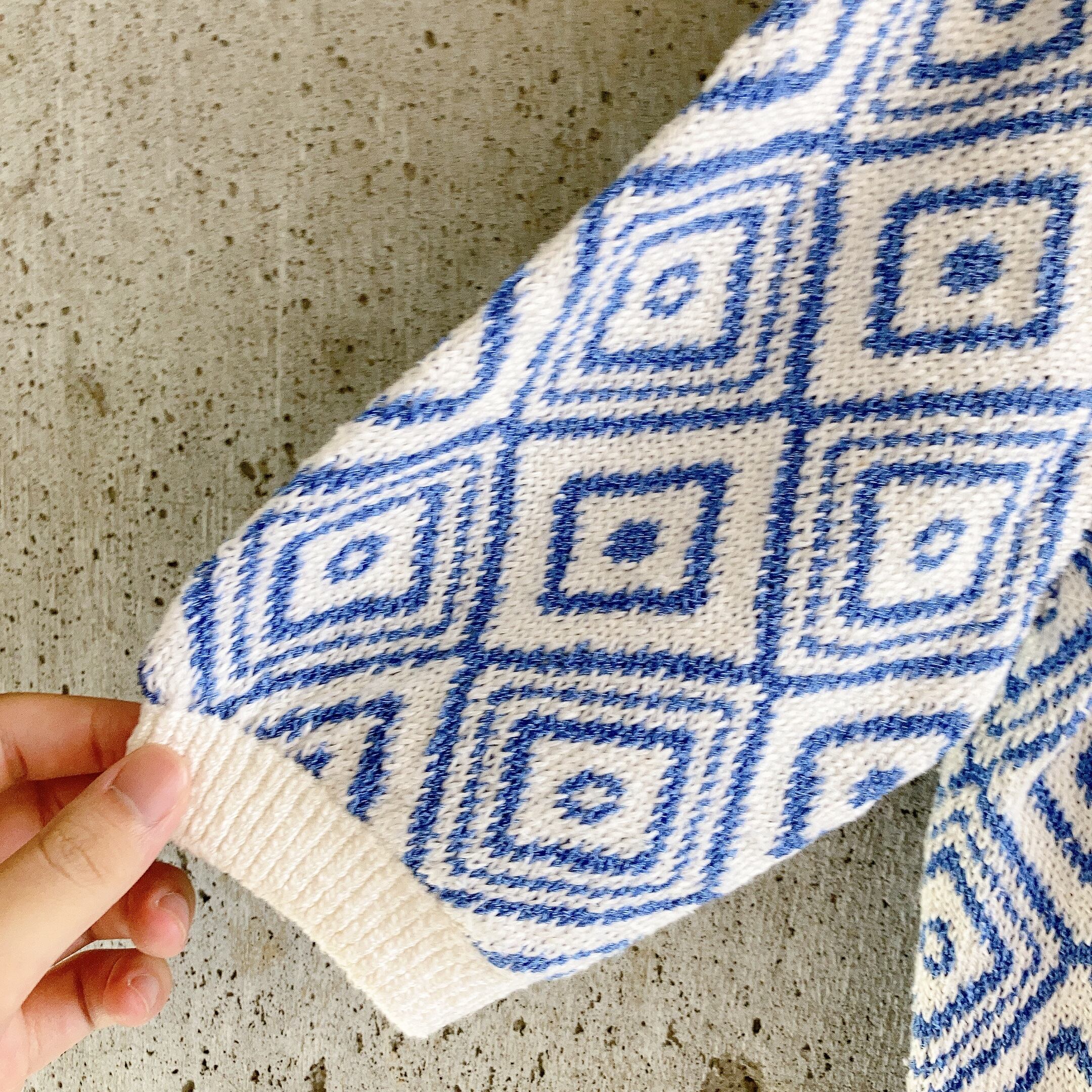 ブルーとホワイトの組み合わせも涼しげで今から秋にかけて活躍してくれそうなニットです。