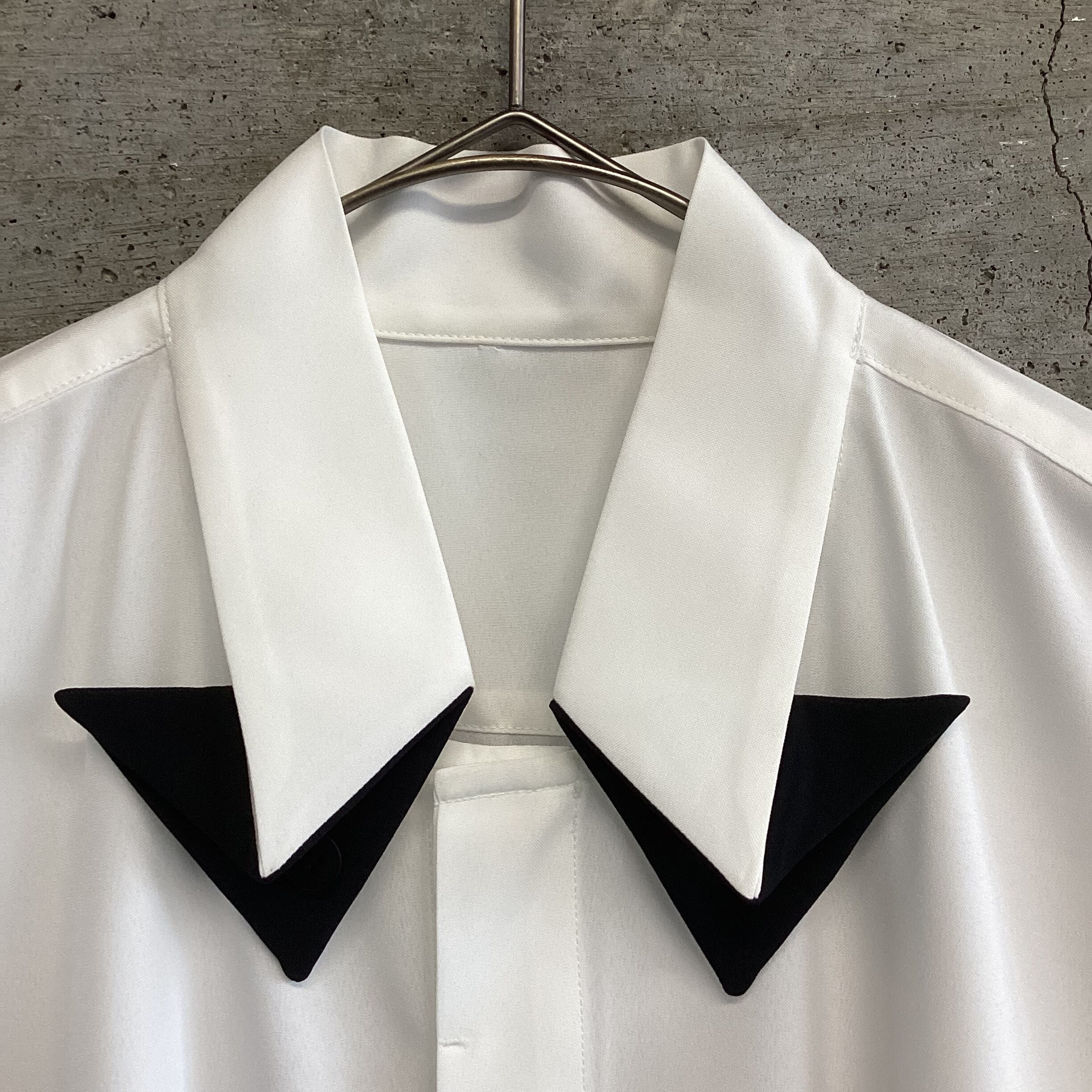 襟先の白と黒の掛け合わせがポイントの美しいシャツです