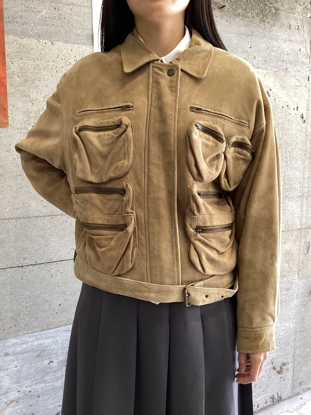 ポケットのたくさん付いたバッグを持たない派には嬉しいレザーブルゾン