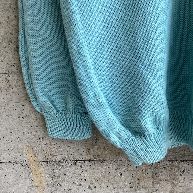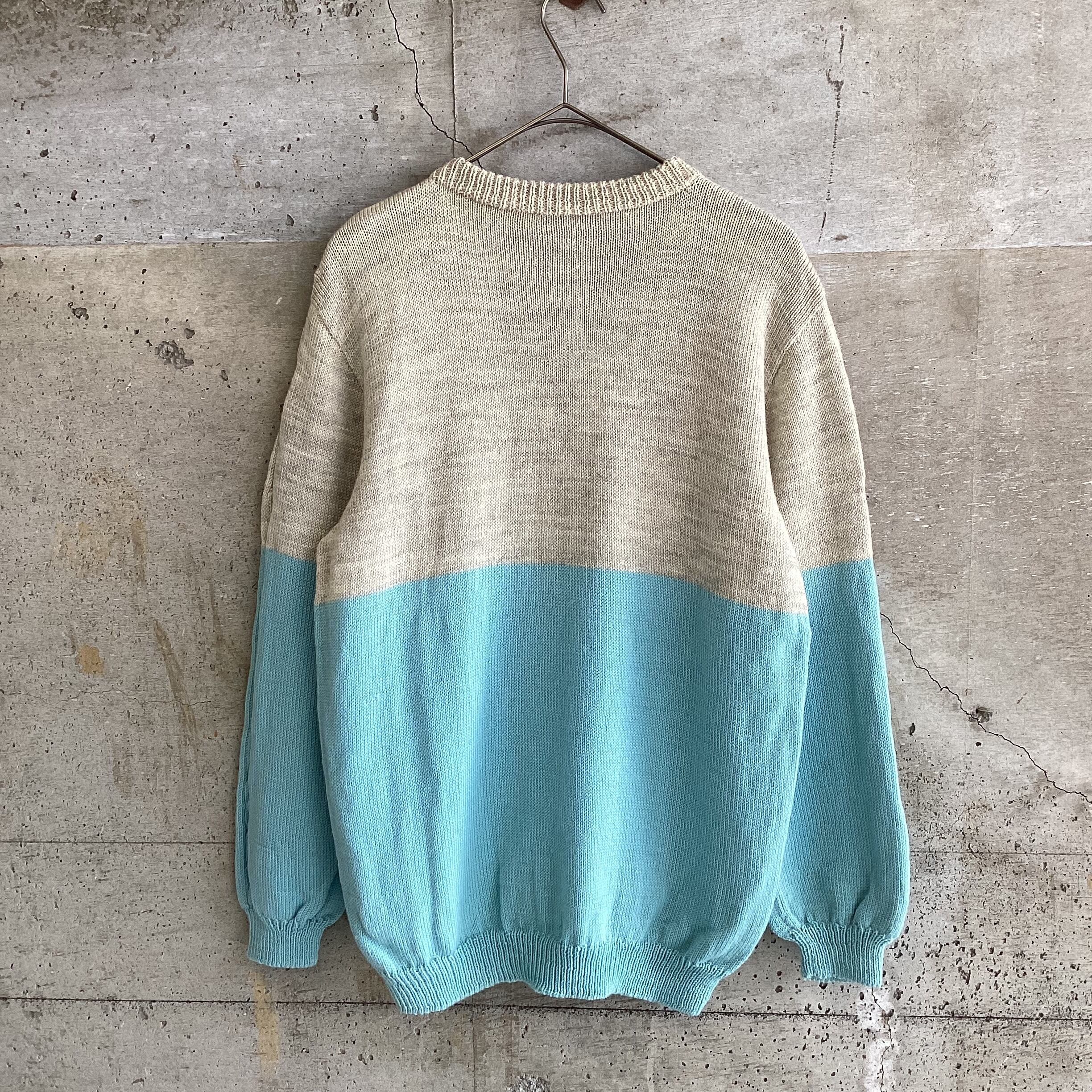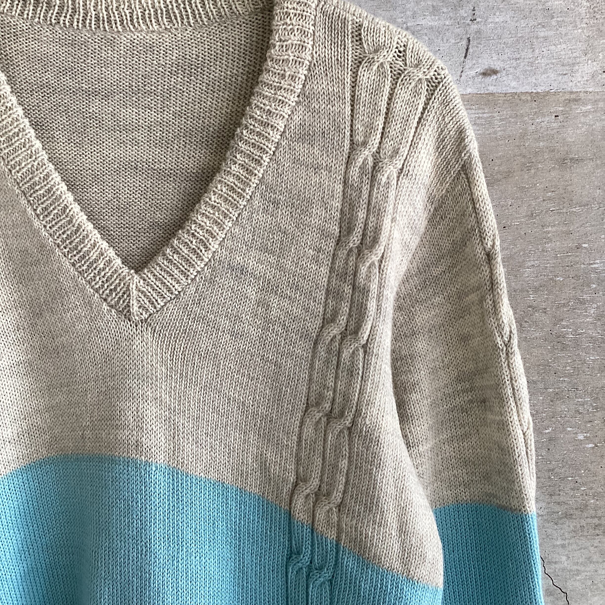 水色とグレーの掛け合わせがキレイなバイカラーのニットです