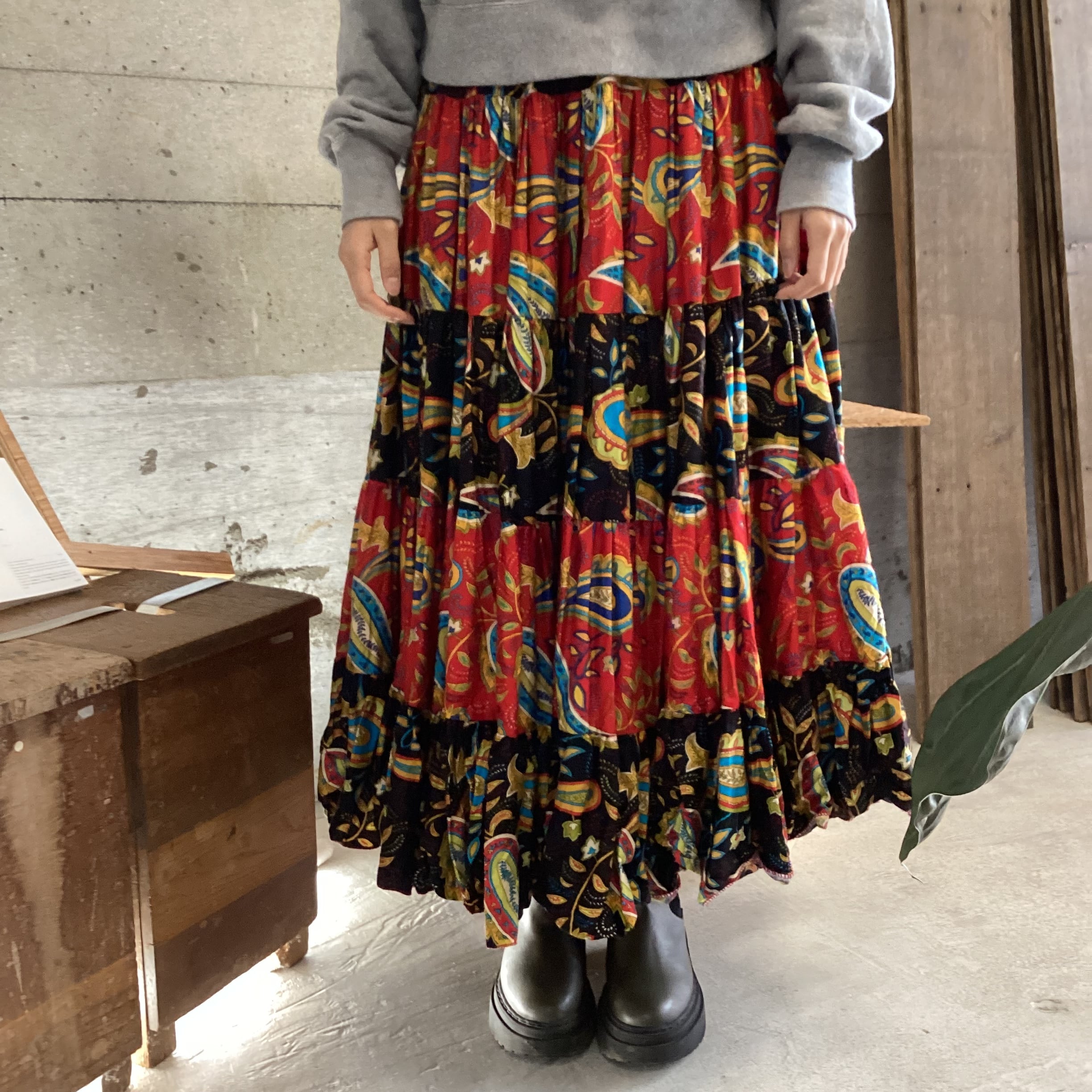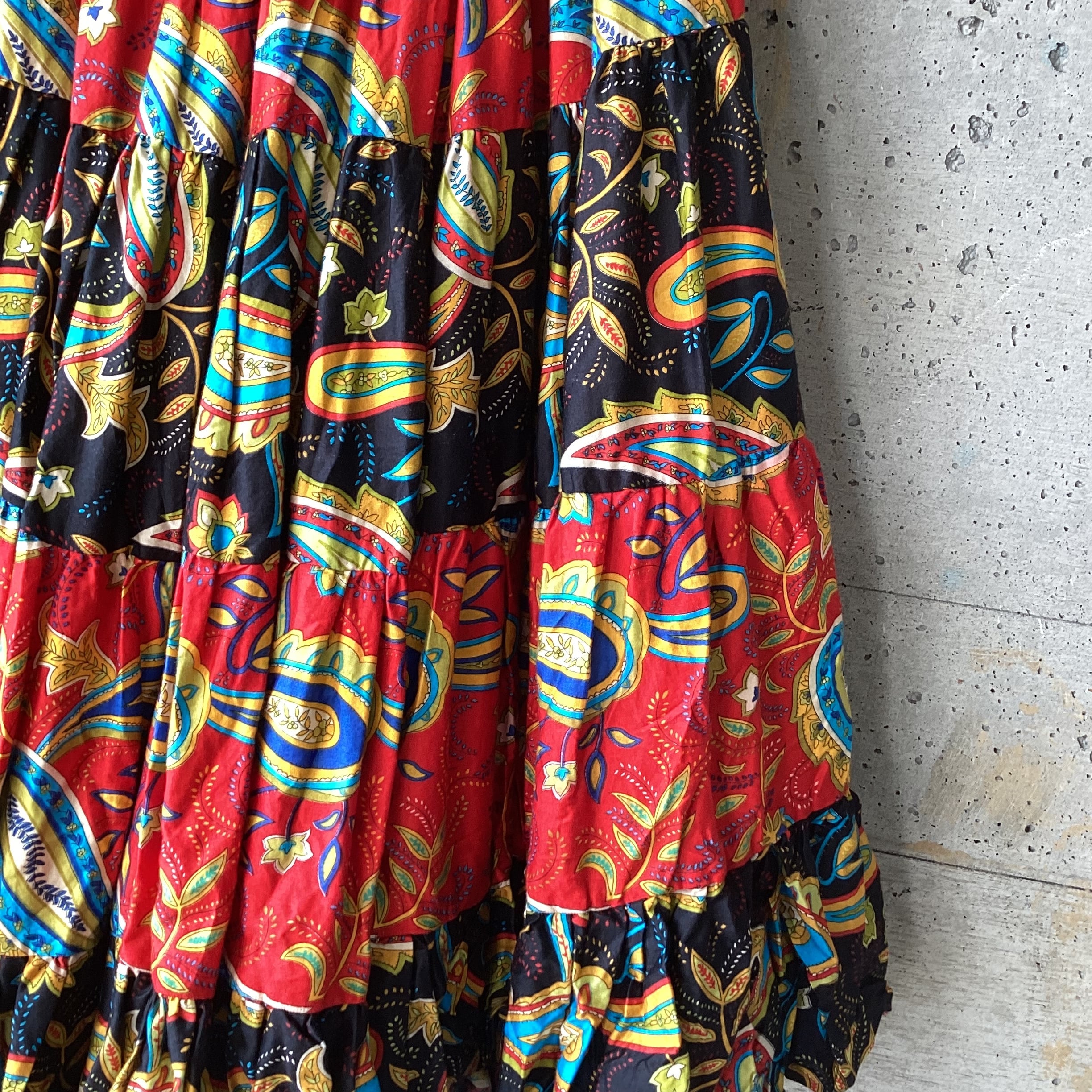 大きなペイズリー柄のティアードスカート