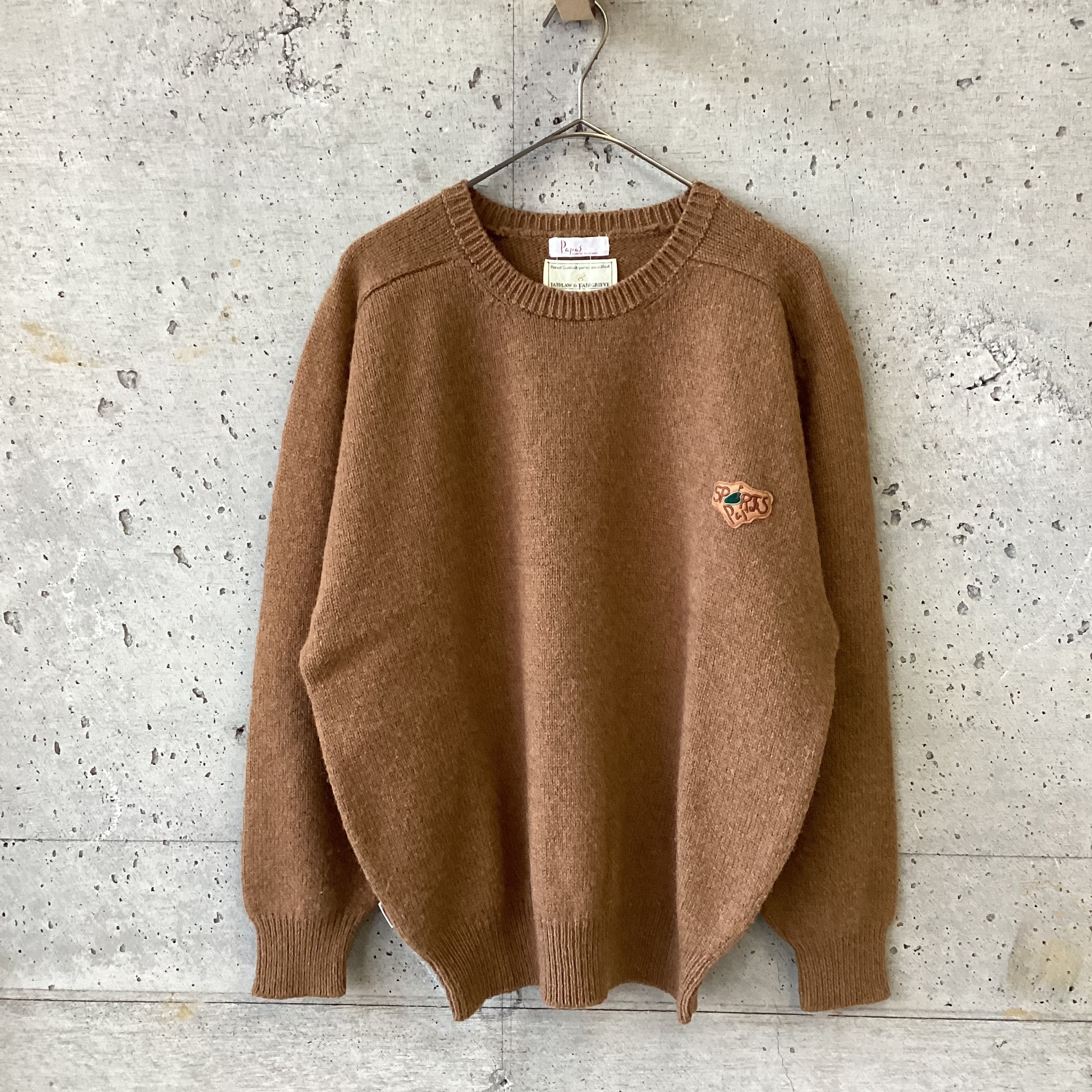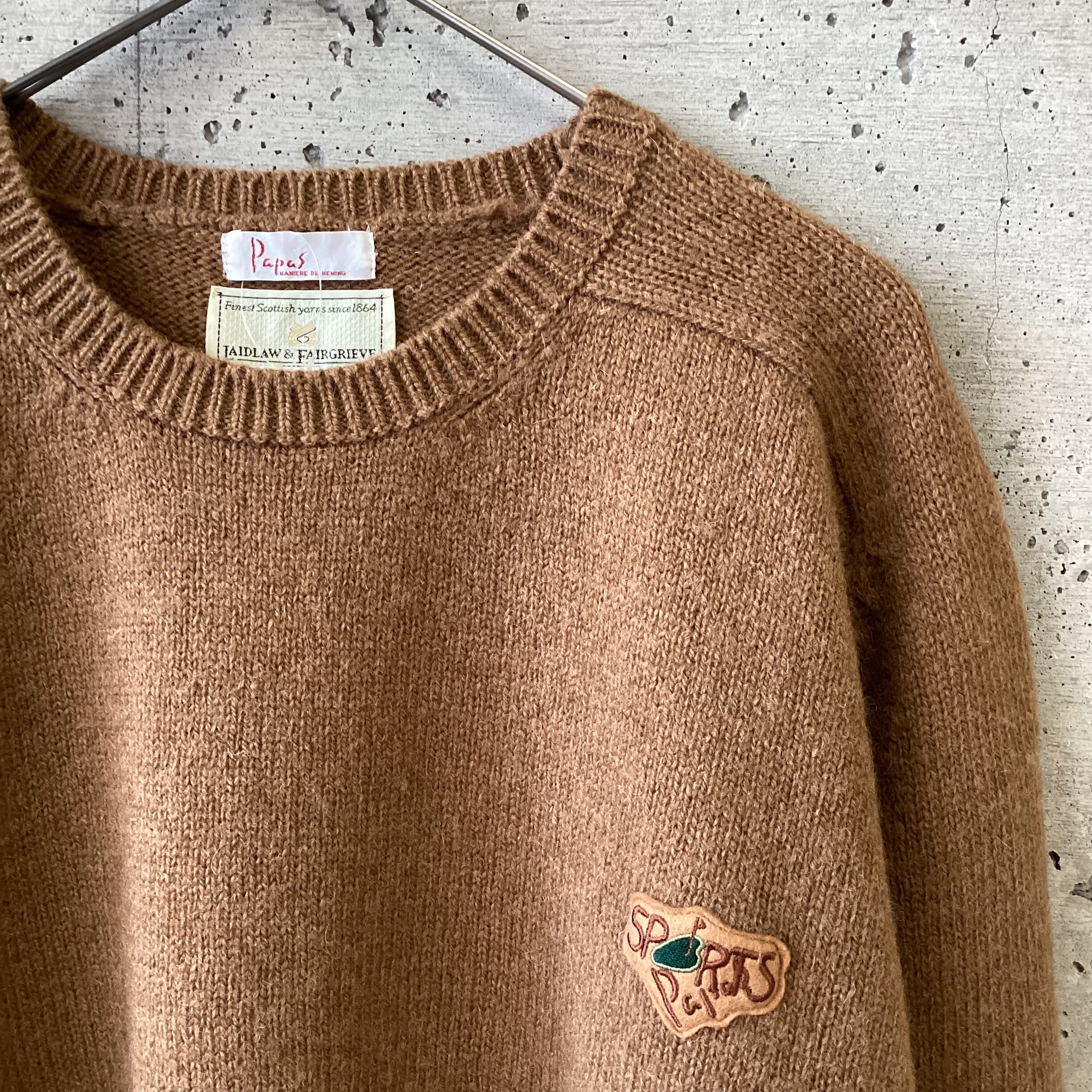 ミドルゲージの起毛感あるクラシカルなニットに、SPORTS PAPASとゴルフ場のワッペン付きです