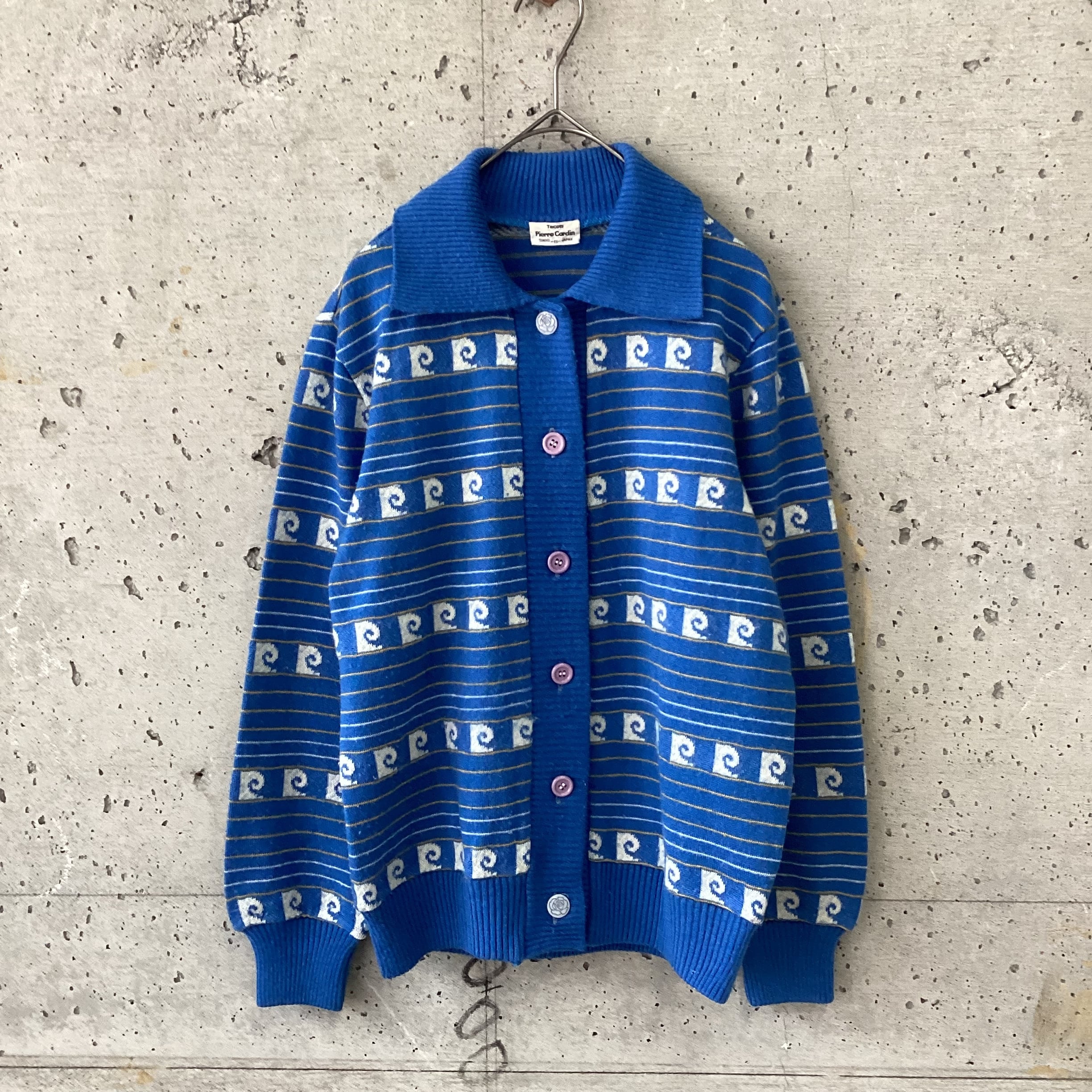 ピエールカルダンの象徴的なロゴマークが全体に入ったニットカーディガンです