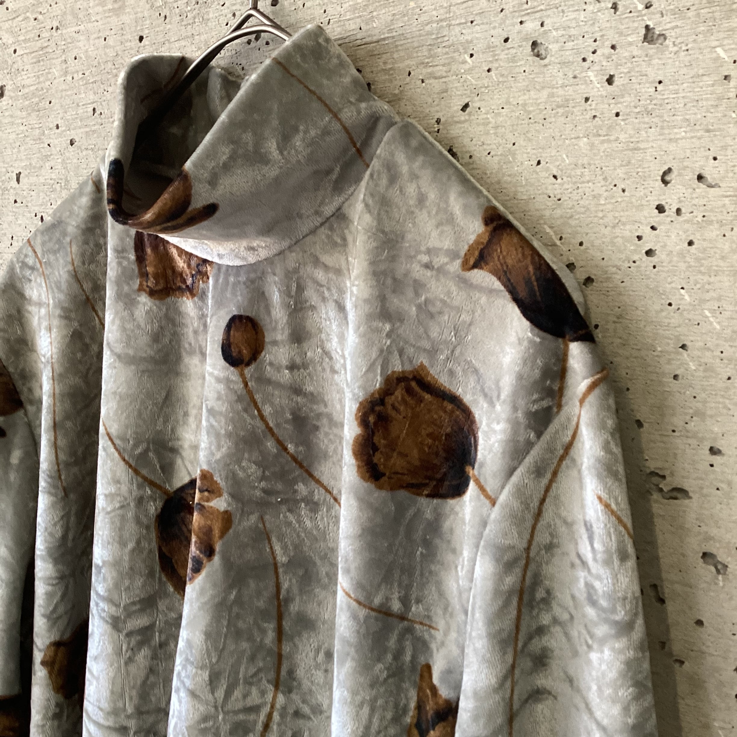 グレーのベロア生地に大きな花柄がクールで素敵です
