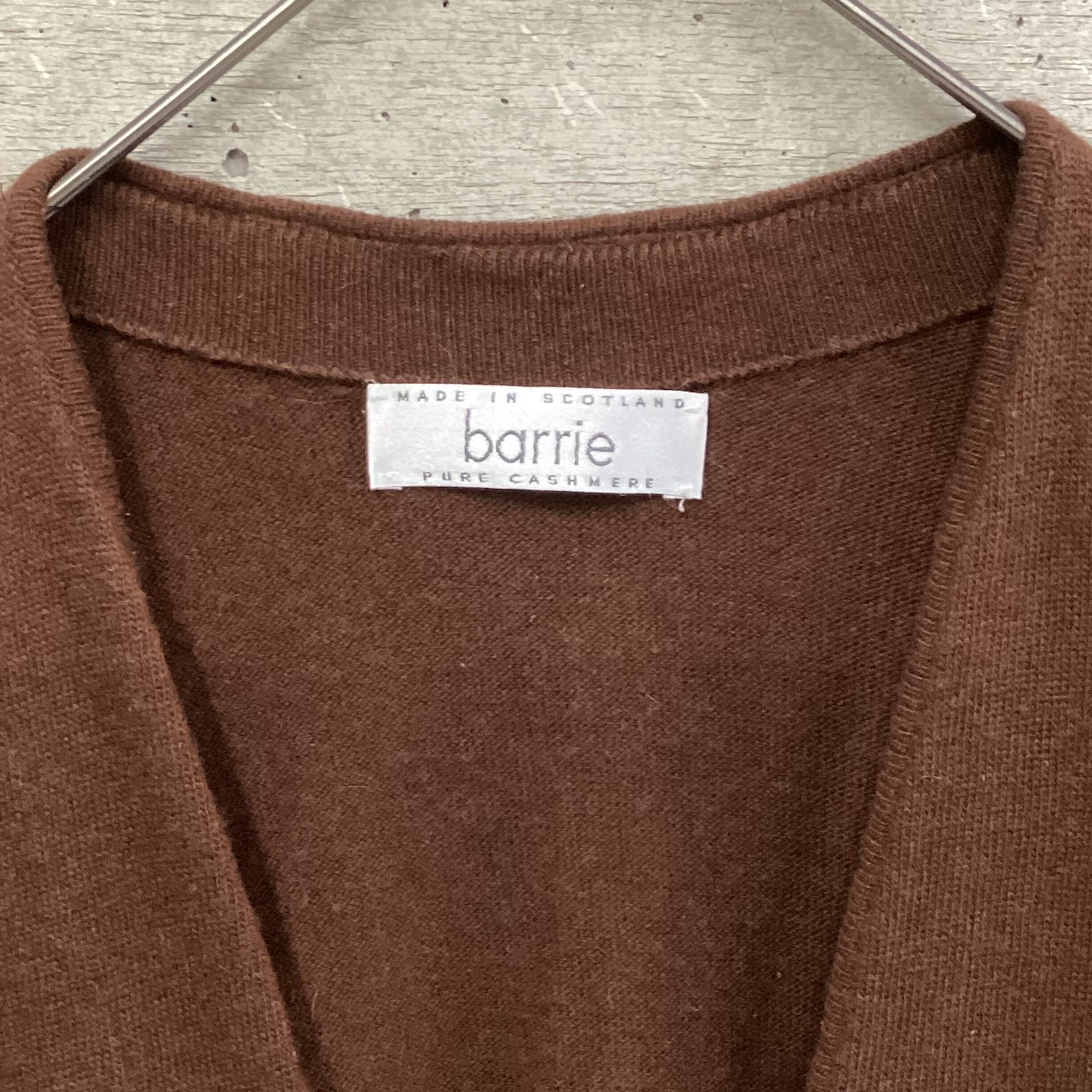 スコットランド発祥のニットブランド。1903年、スコットランドの国境近くにて誕生。設立から数十年間に渡り、有名なメゾンとして活動を続け、 2012年にシャネル(CHANEL)によって買収。2014年に、バリーニットウェア(BARRIE)としてブランドをスタートさせる。現在は、バリーニットウェアのニットには、高級カシミアを使用。長さや太さなどを厳選してブレンドされた繊維は、カラーマッチング技術を駆使して染色される。編まれた後は、パーツごとにカシミア繊維を開くために、工場の横に流れるティビオット川の水で洗われ、40以上の工程のほとんどを手作業で行い、ニットウェアが製作される。