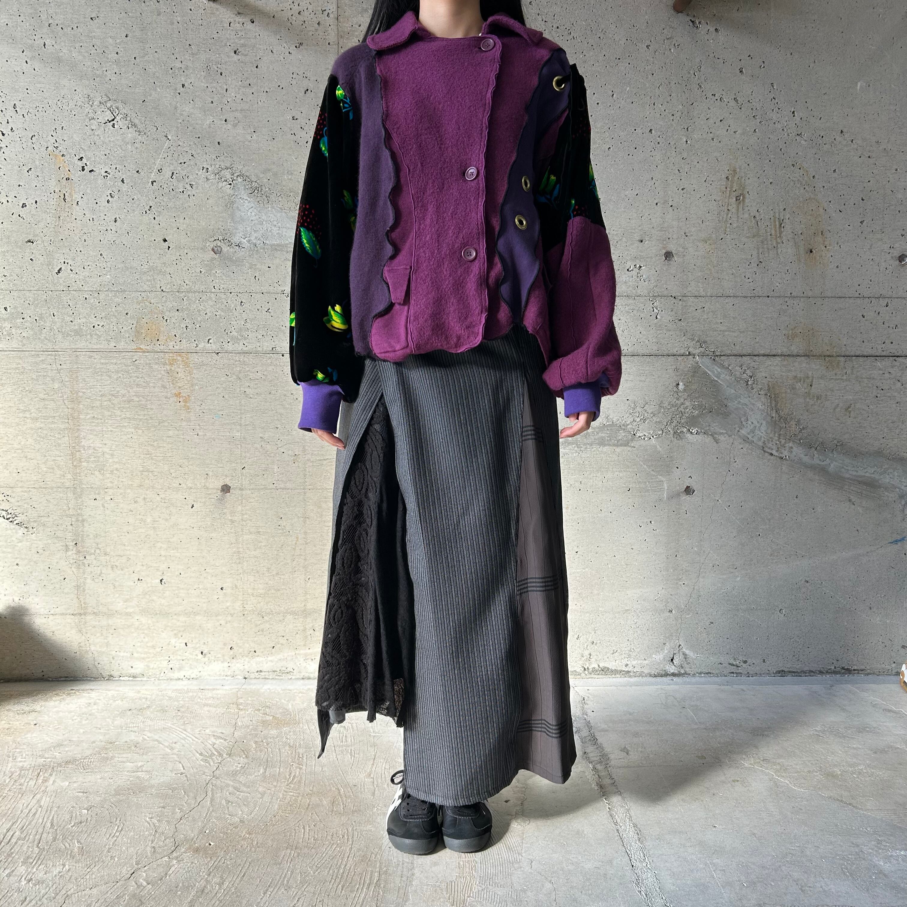 3種類の紫の生地にチューリップの生地が切り替えになっています