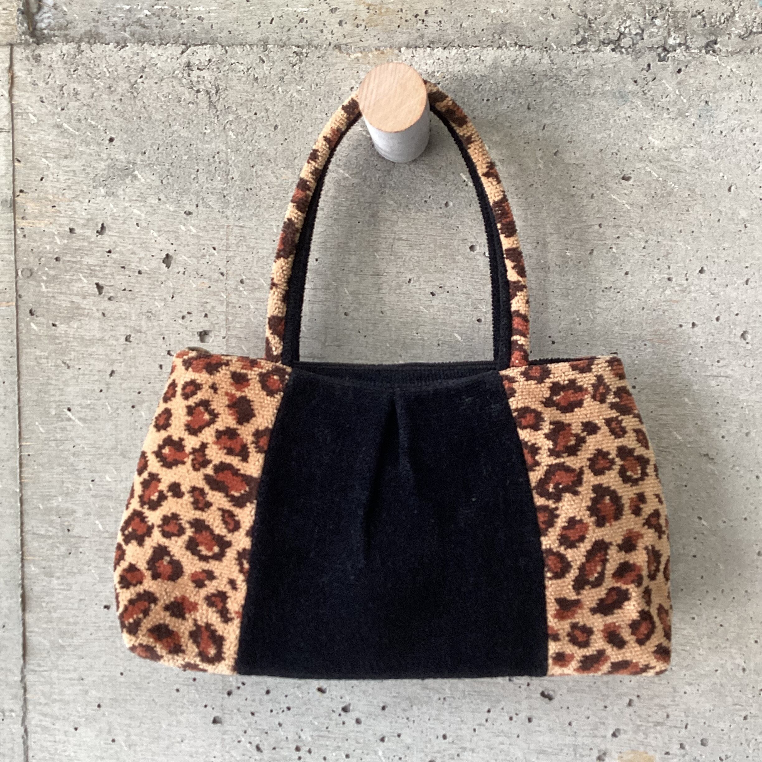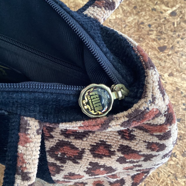 パイル地のレオパード柄の軽くて持ちやすいミニバッグです