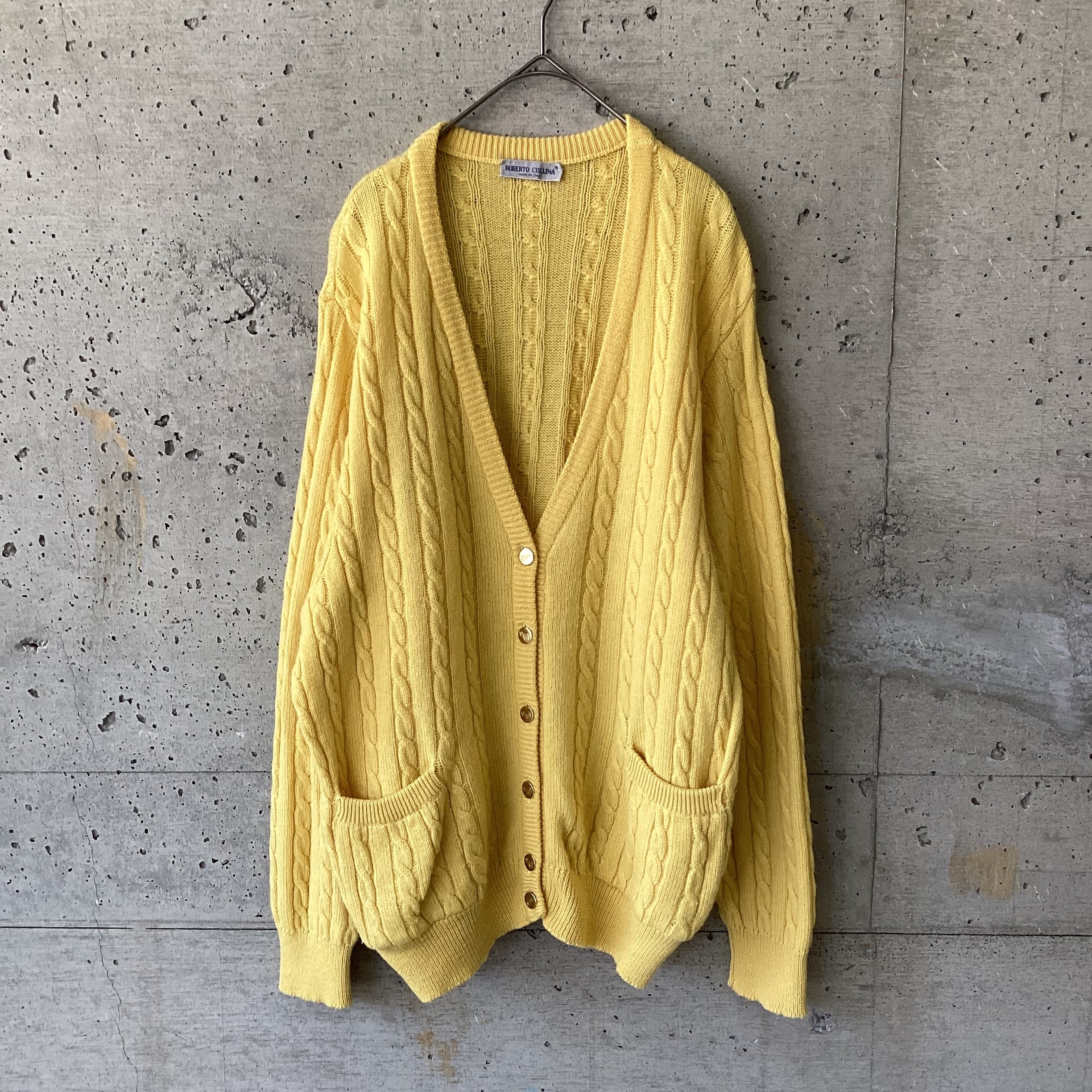 キレイな黄色も、刻印の入ったゴールドのボタンも素敵なニットカーディガンです