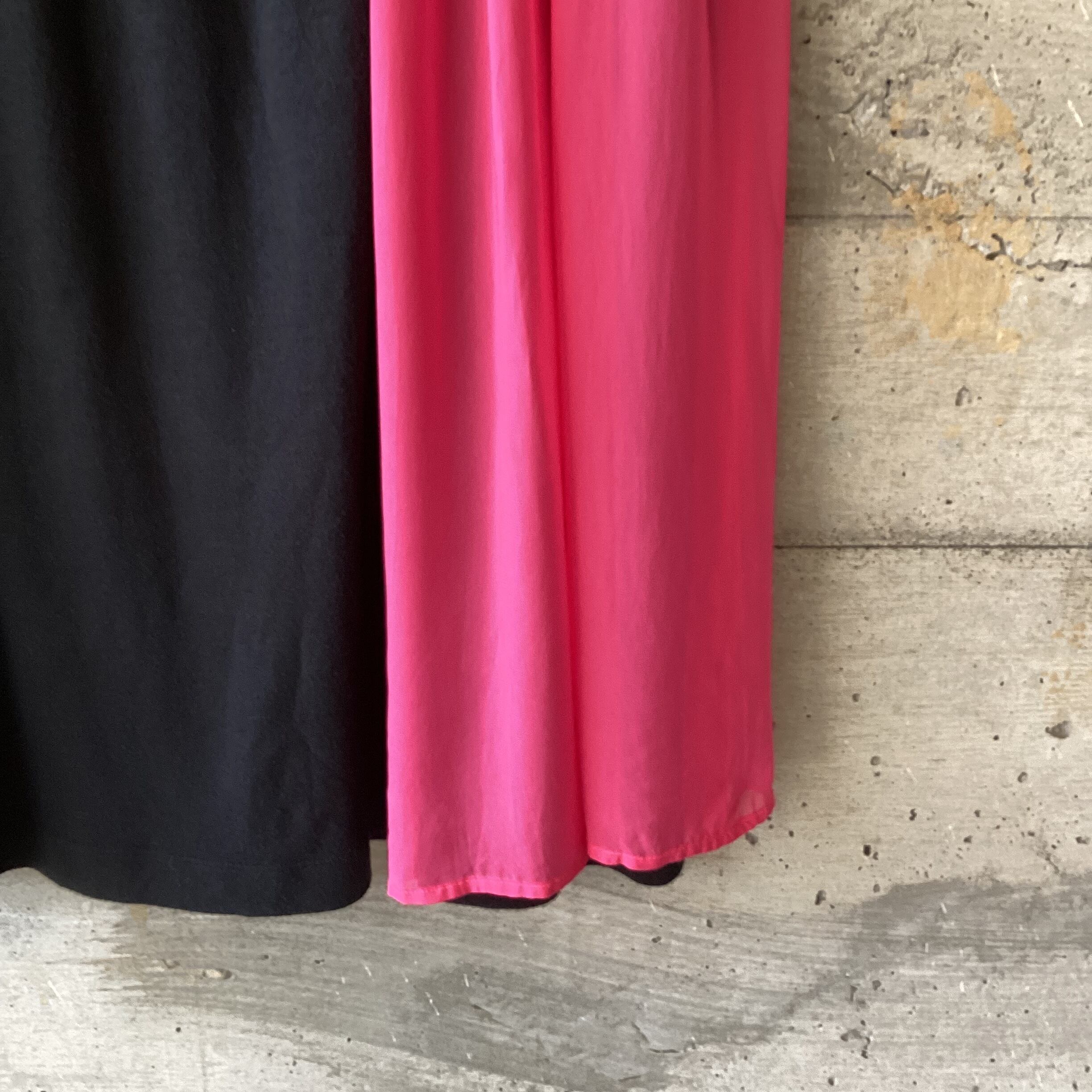 サイドのピンクの布は、黒のスカートの本体の上に付いたデザインで透けません