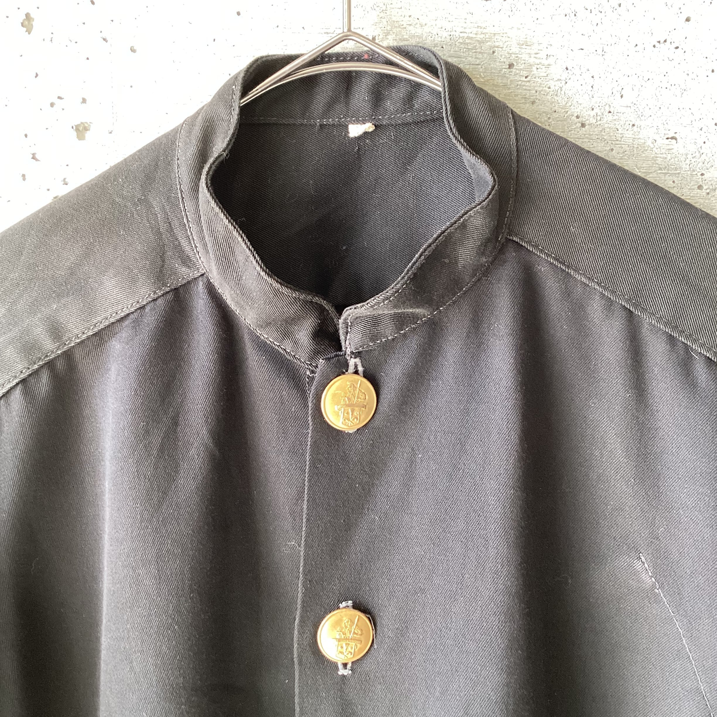 ゴールドのボタンが学生服のようなイメージですが、内ポケットのステッチが表に出ていて面白いデザインです