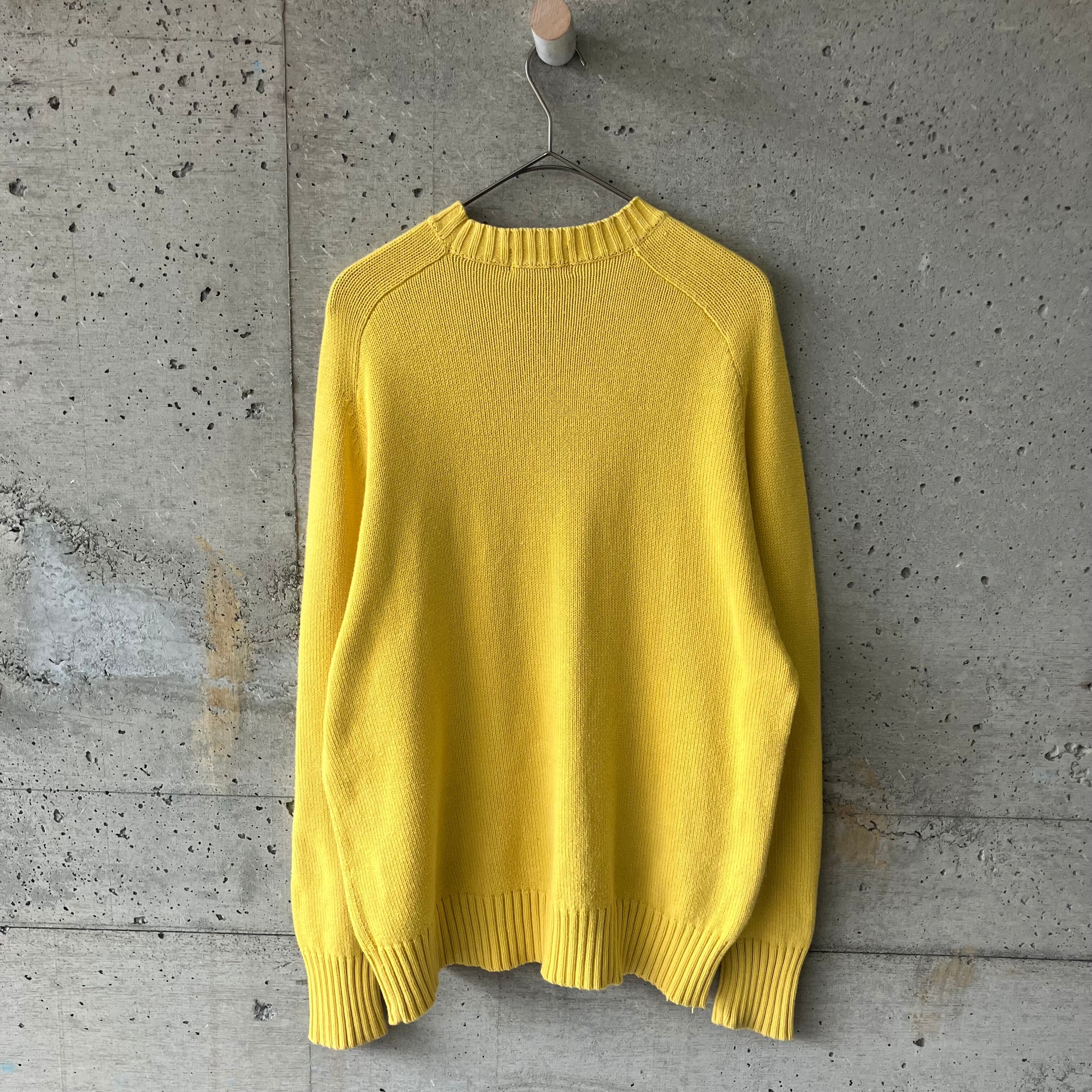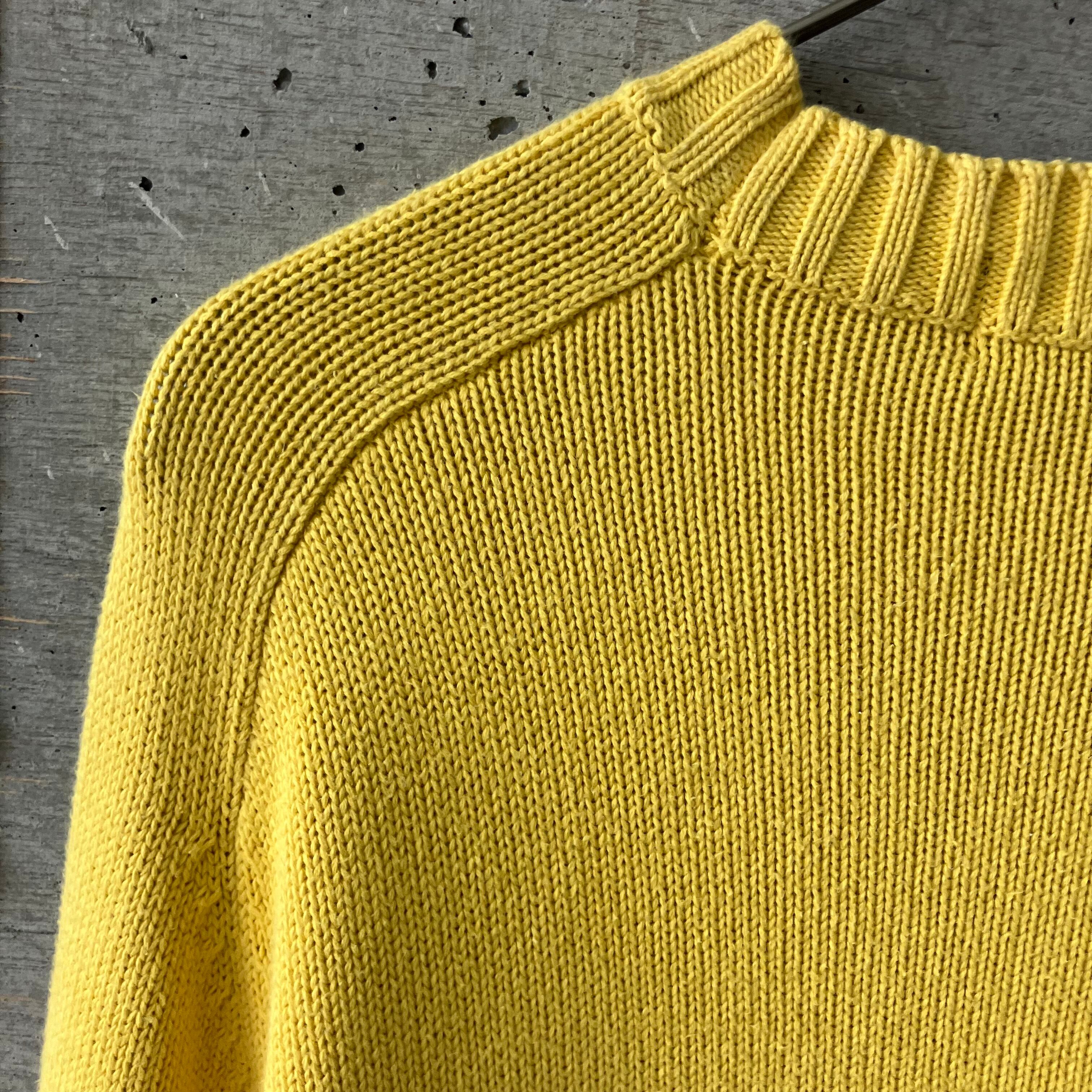 はっきりした単色の黄色のニットなのでワントーンコーデに向いています。