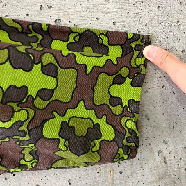 ポップな雰囲気のカモフラプリントにポケットのパイピングがオシャレです