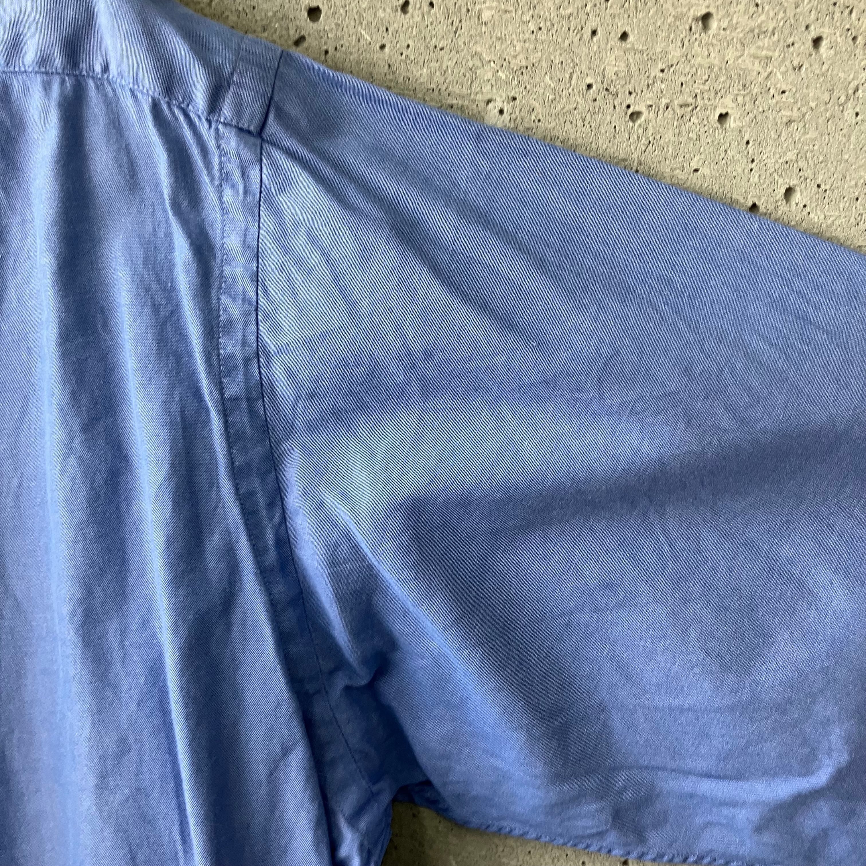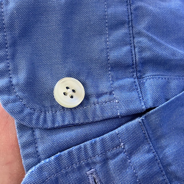 サイズ感が大きめなのでゆとりがありますがアメリカらしいボタンダウンでかっちりした印象を受ける一着です。