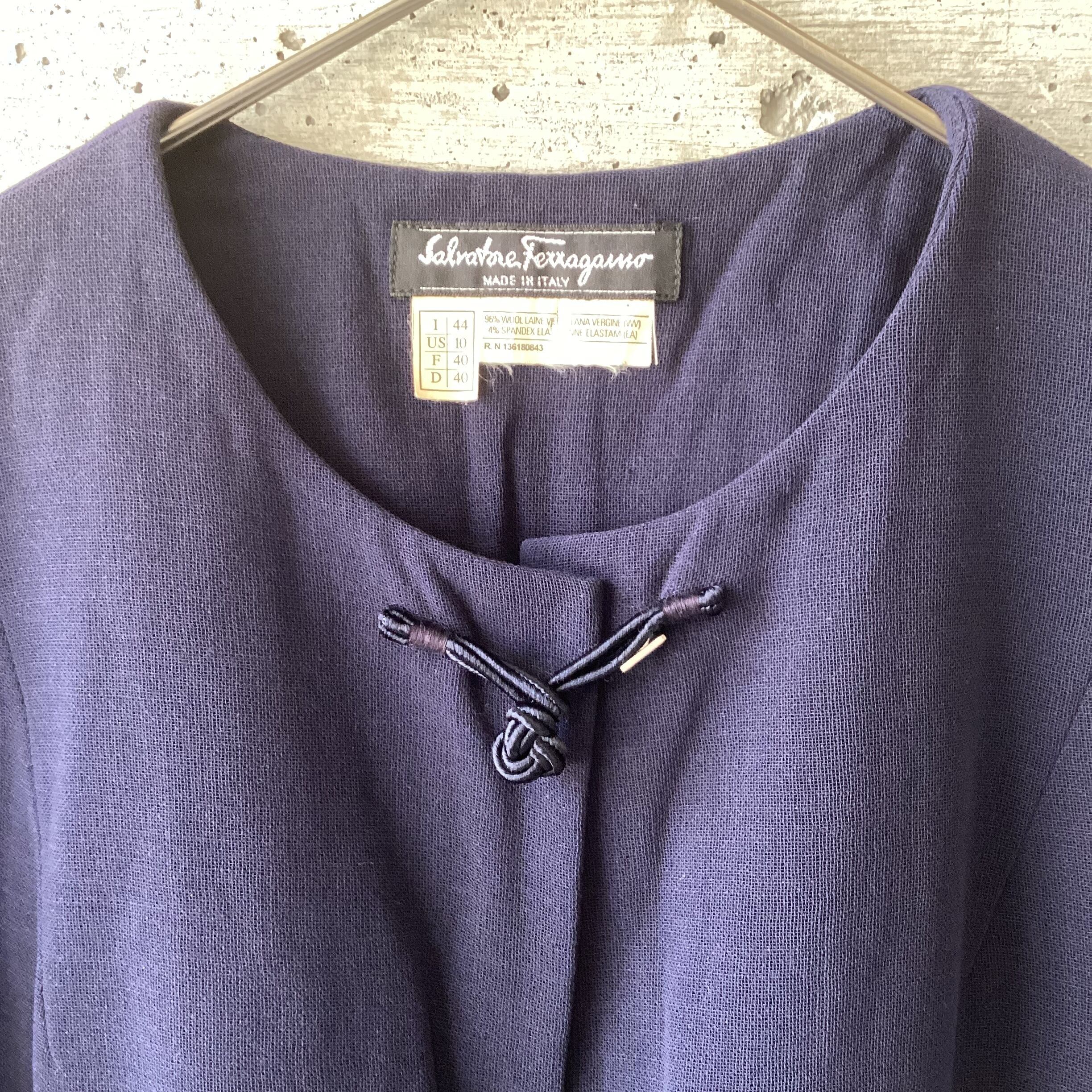 1番上の留める部分にシルバーの小さなプレートが付いていて「ferragamo」とロゴが入っています