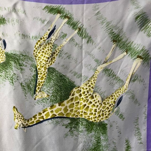 全体に大小さまざまなキリンがプリントされたスカーフ。