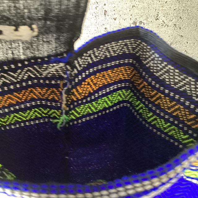 他の民族柄のバッグに比べてサイズ感が小さめなのが特徴で濃いめのブルーが映えるアイテムです。