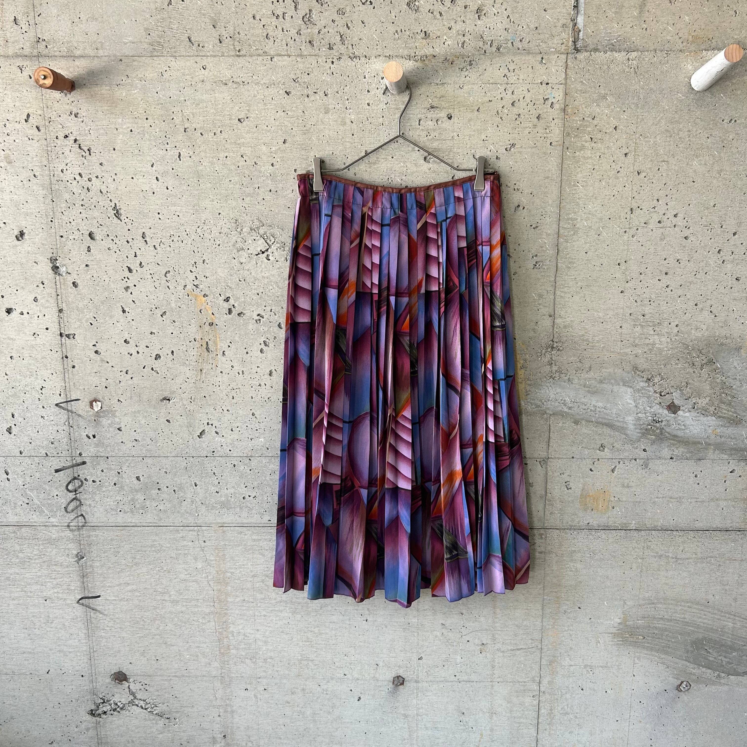 purple pattern pleated skirt