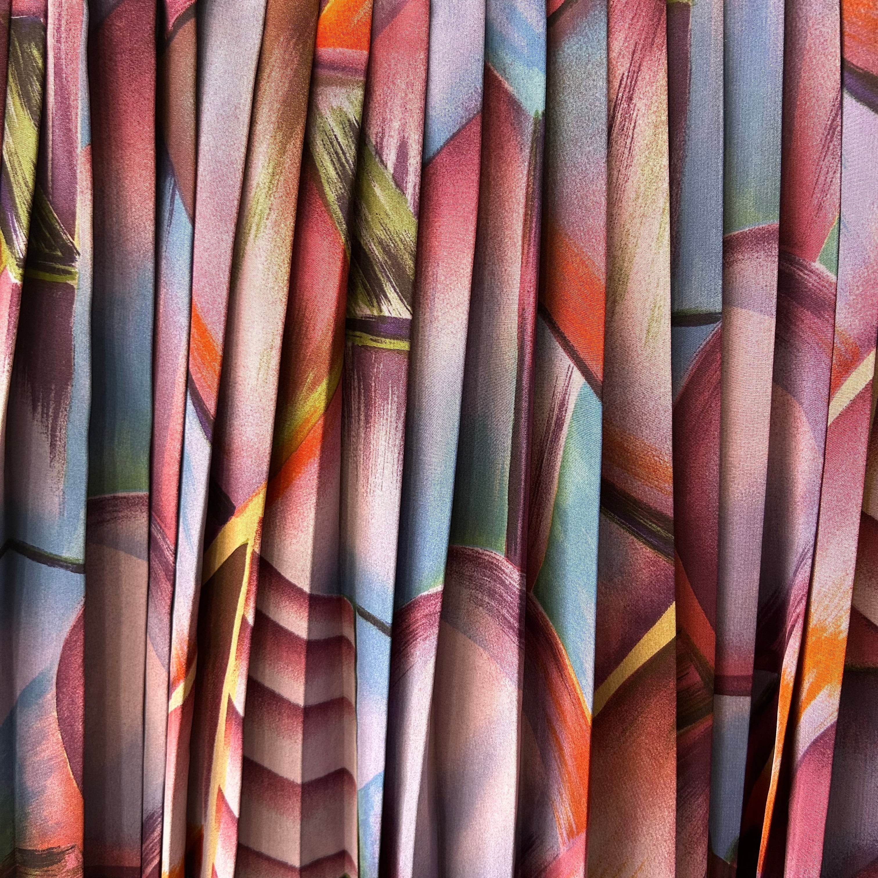 細かいプリーツなのに対して、大柄なパターンなので、可愛いと綺麗のバランスがいい一着です。
