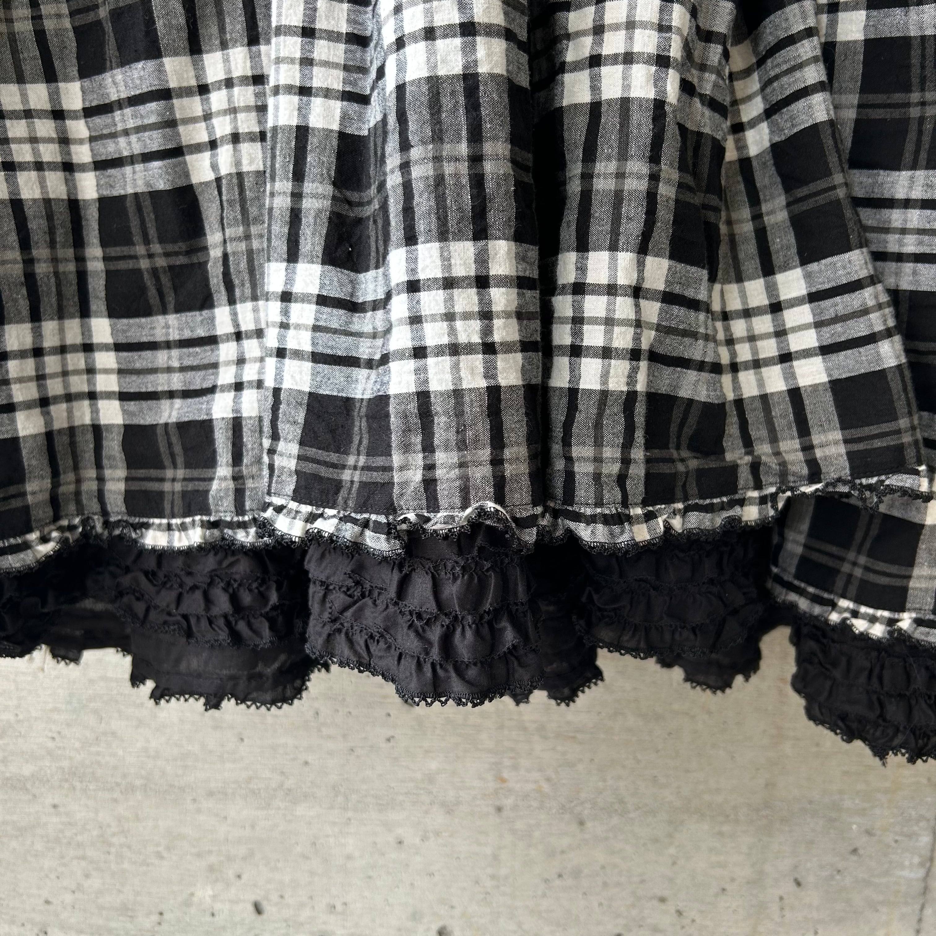 裾下から見える4段のレース、布をたっぷりと使ったギャザー、ドルマンのパフスリーブなど、女の子を最大限可愛く見せてくれるPINK HOUSEらしい特別な一着となっています。
