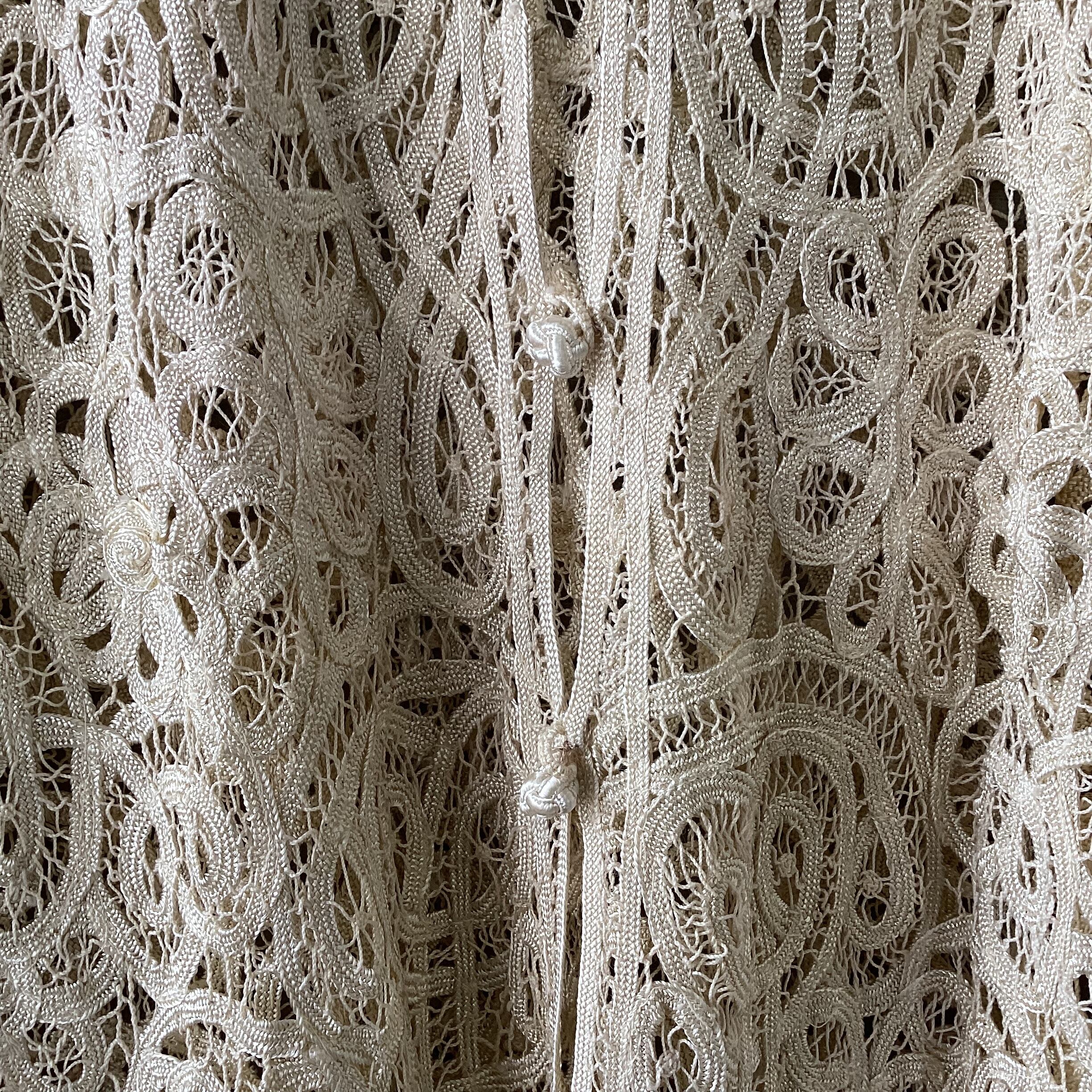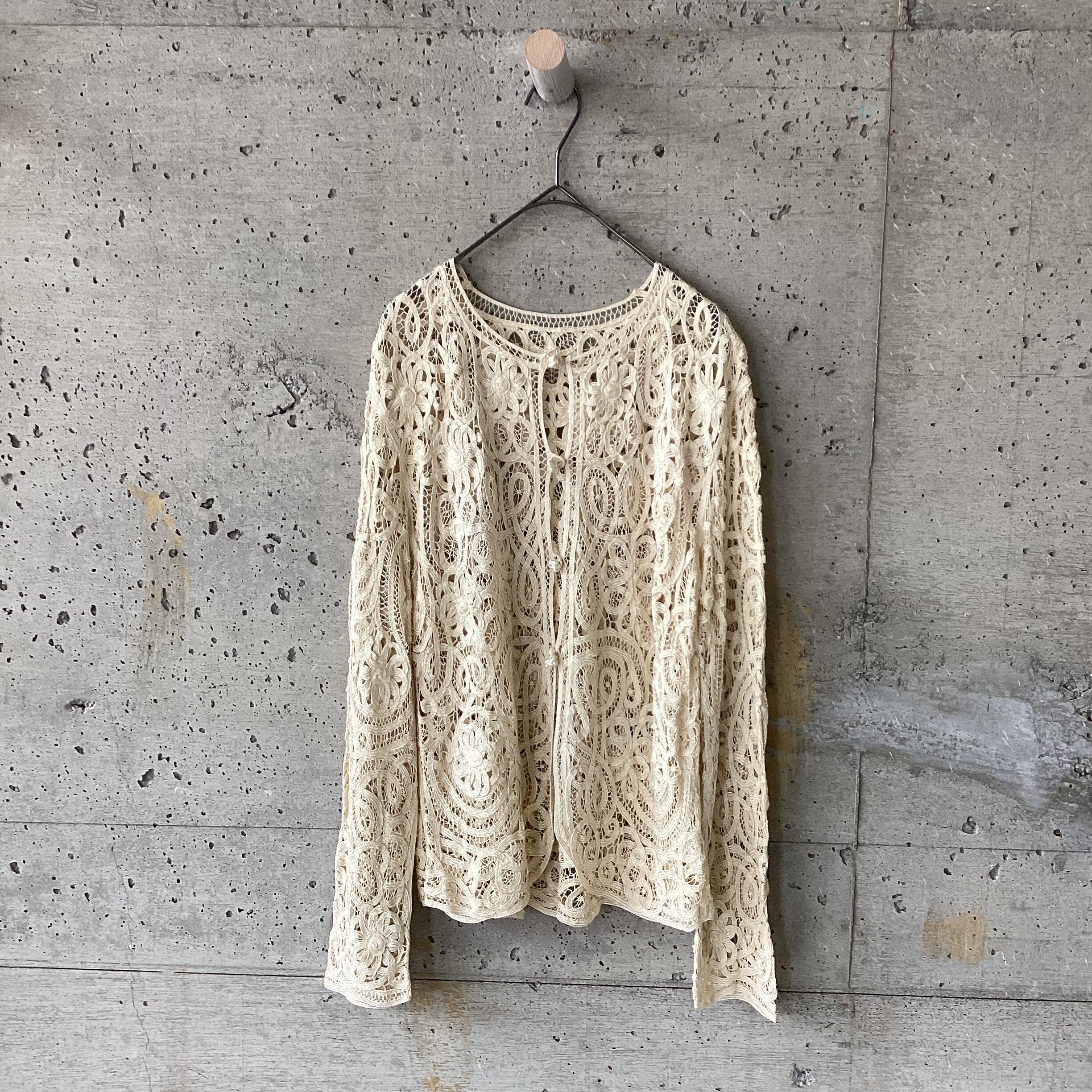 ループ状の糸と細めの糸が組み合わさってレースになっているスペシャルなカーディガンです