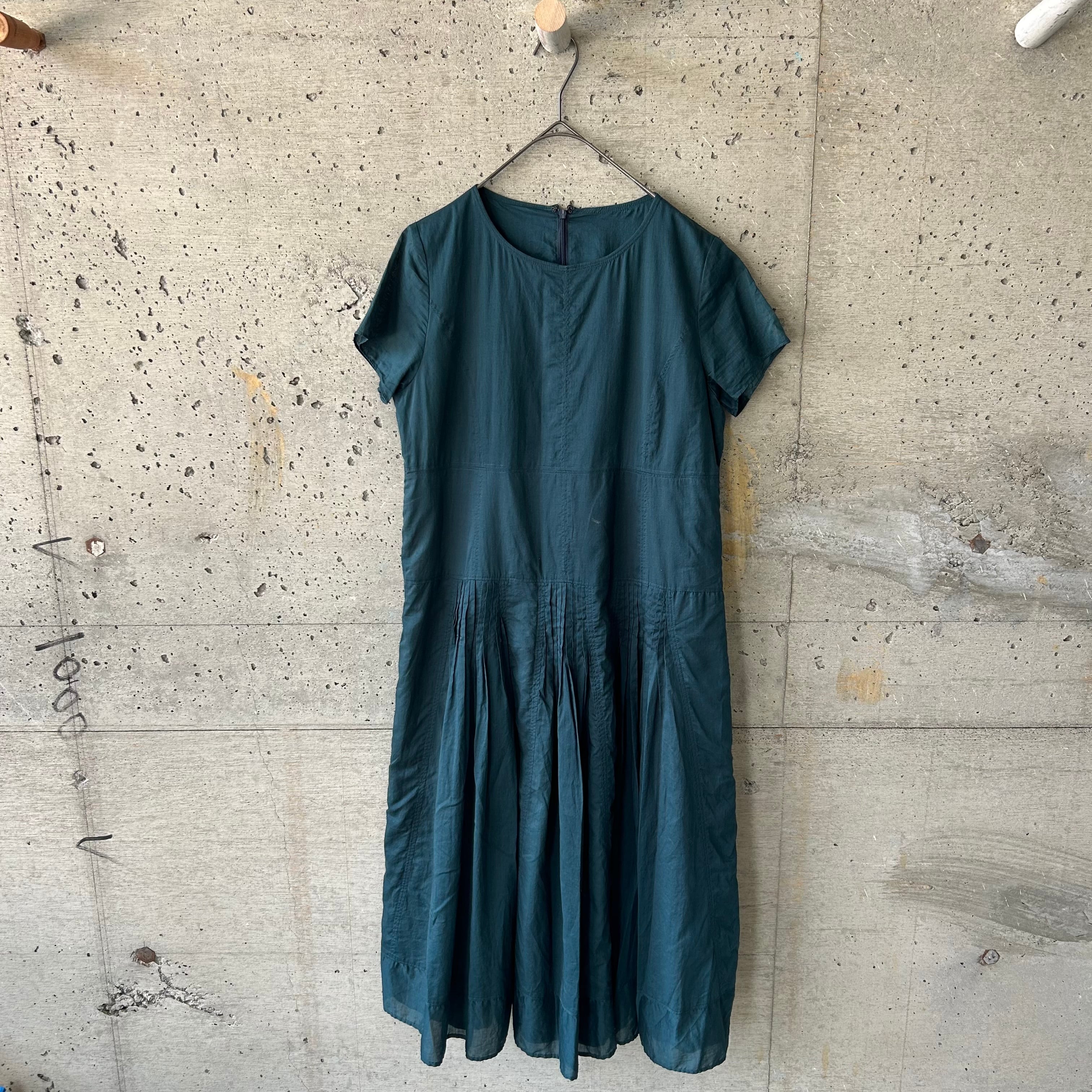透け感のある生地が使われたディープグリーンのワンピースです。