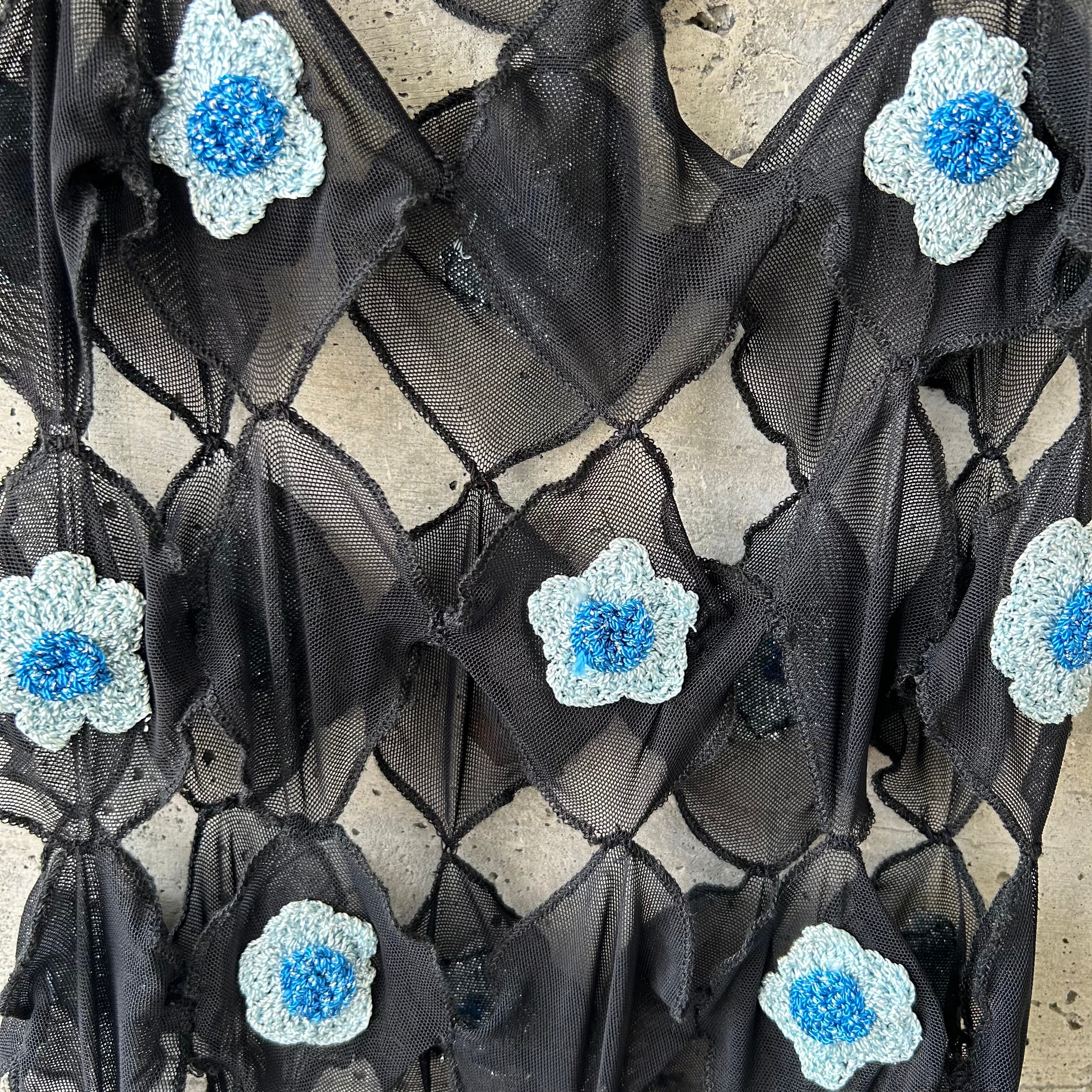 点々と、ラメ糸と編まれたお花のモチーフが取り付けられています。