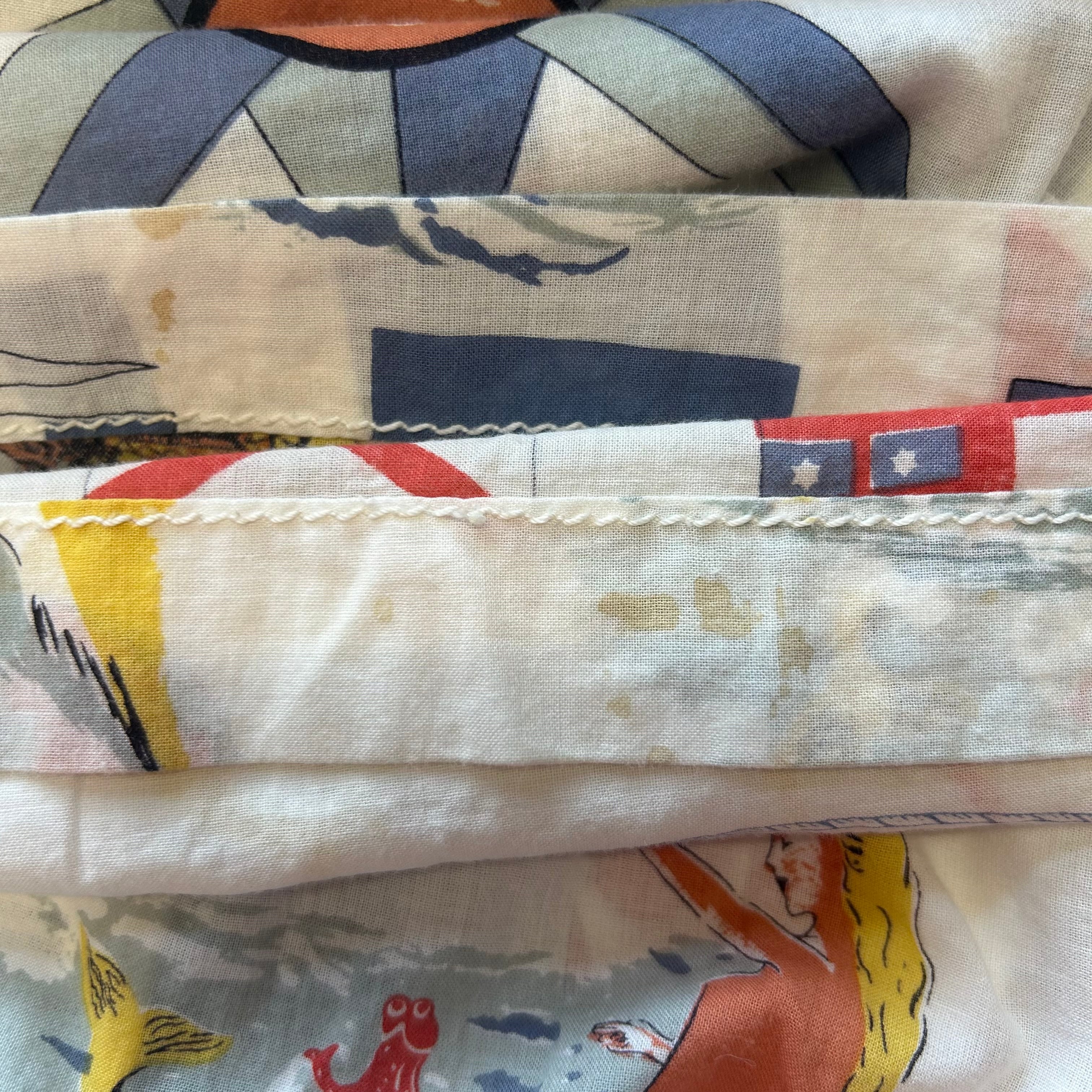 かなり太めの縫い糸が使われていて、マリン調の柄によく合っています。