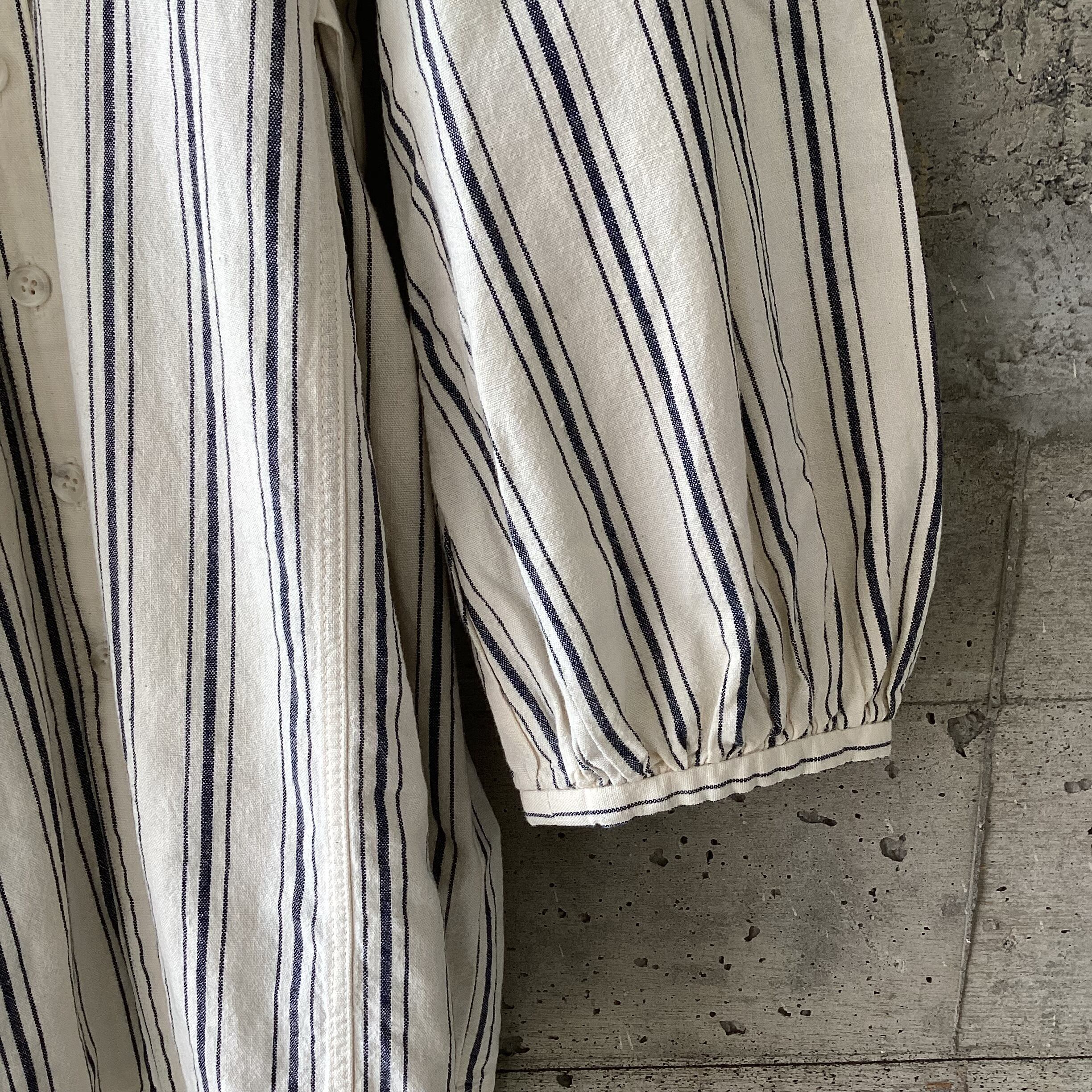 ファーマー風な雰囲気がありますが、後ろで結ぶリボンや袖口のギャザーなど女性らしい雰囲気もあります