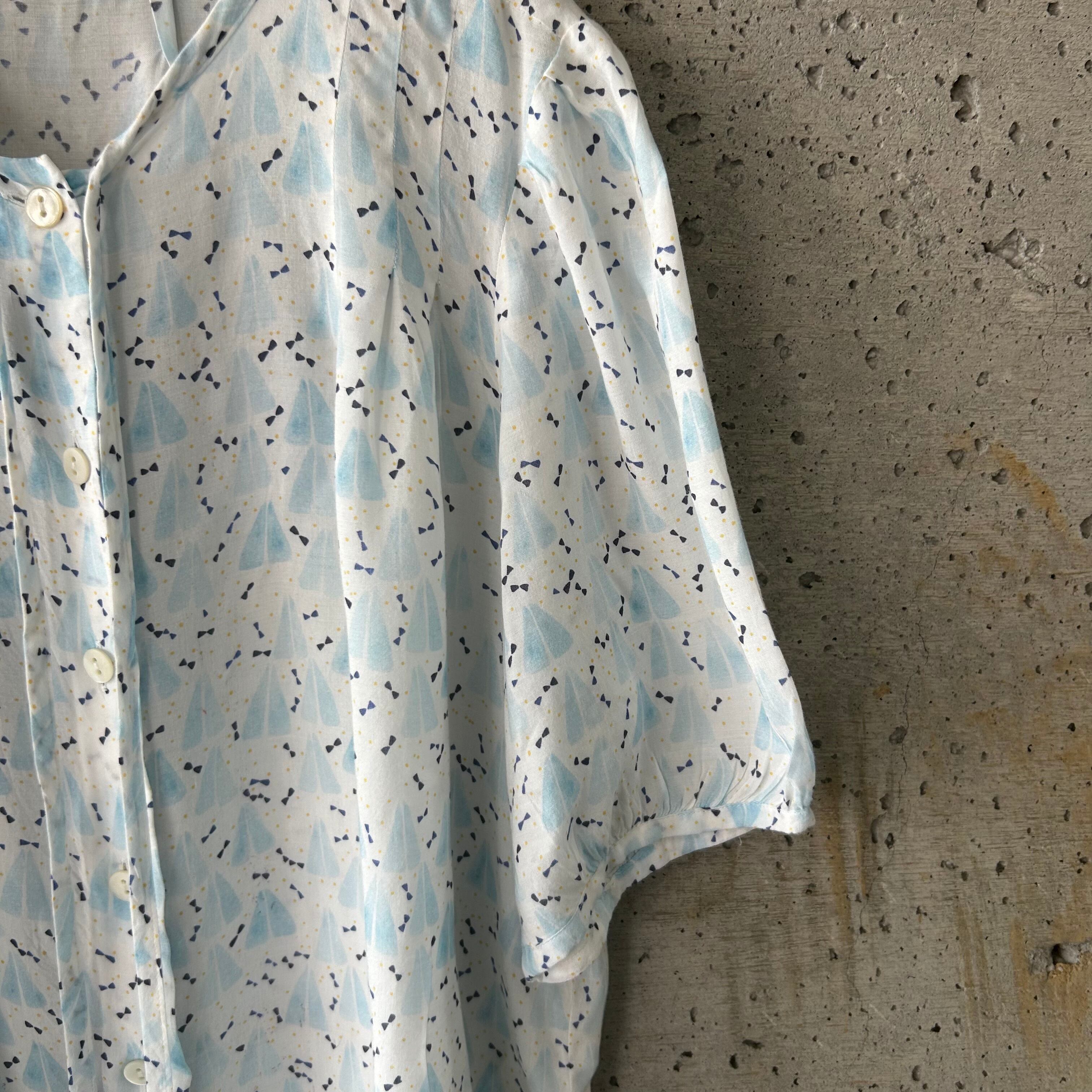 水彩画のようなプリントが美しく、麦わらの帽子や、軽い素材のスカートなどと合わせるのがおすすめです。