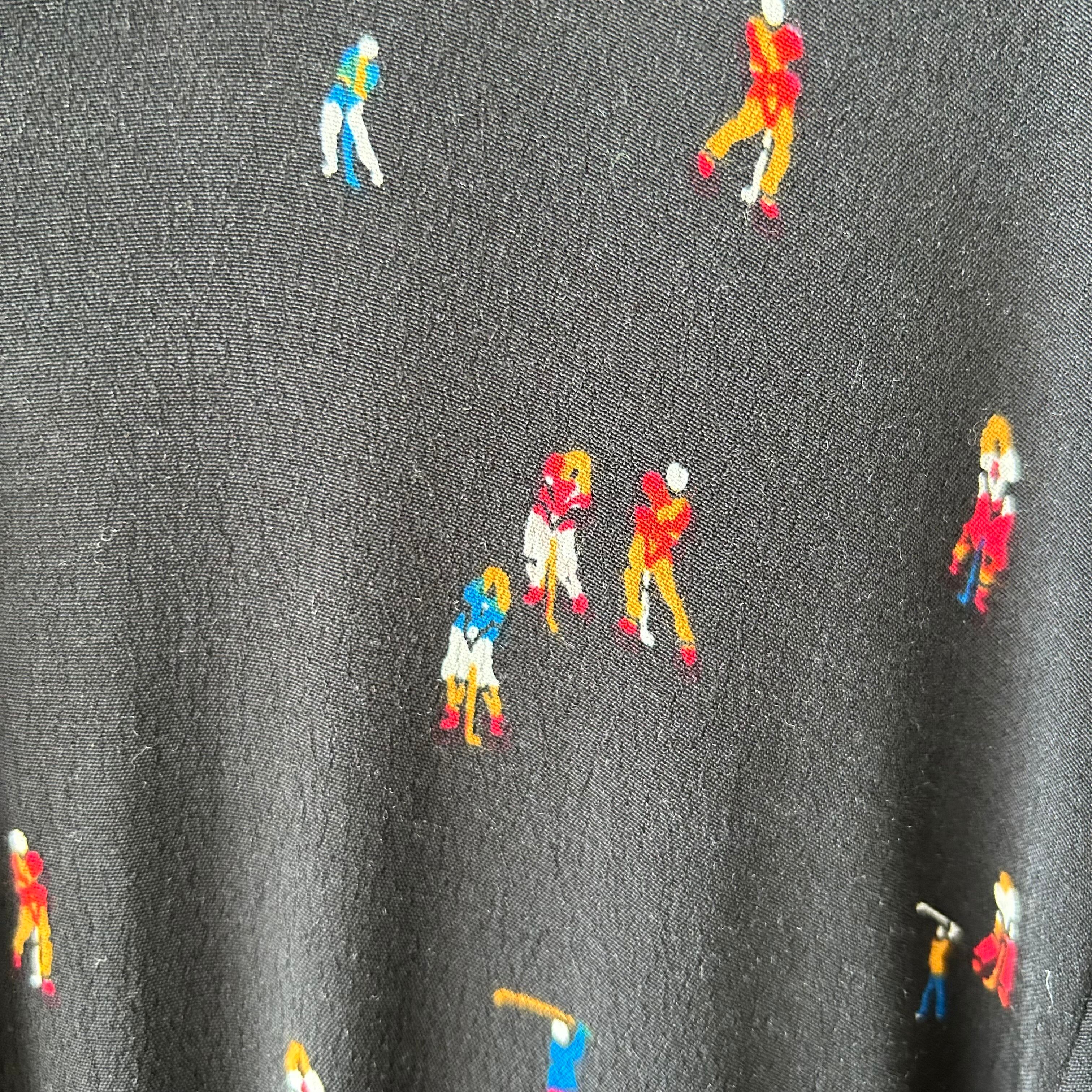 ゴルフをしている人たちのテキスタイルも可愛いですが、襟や袖口がピコレースになっていたり、ウエストや袖口がシャーリングになっていたりと細かいところが可愛いです