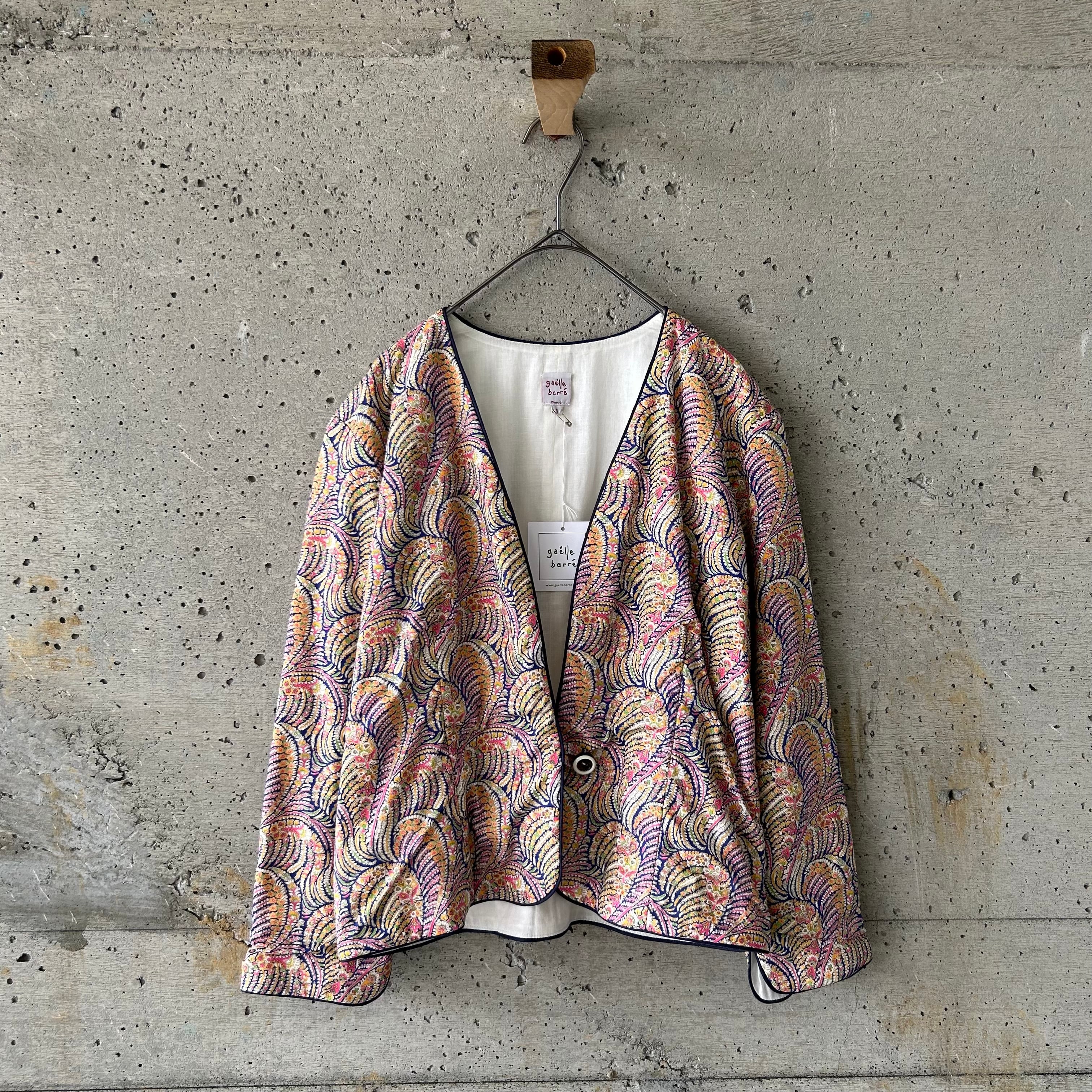 美しい柄と可愛い大きめのボタンが素敵なジャケットです