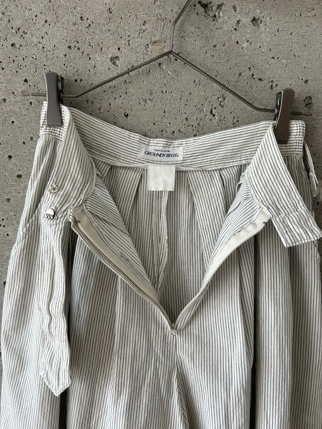 履くと、スカートのようなシルエットになりますが、グレーと白のストライプですっきりとしているためボーイッシュな印象を与えてくれます。