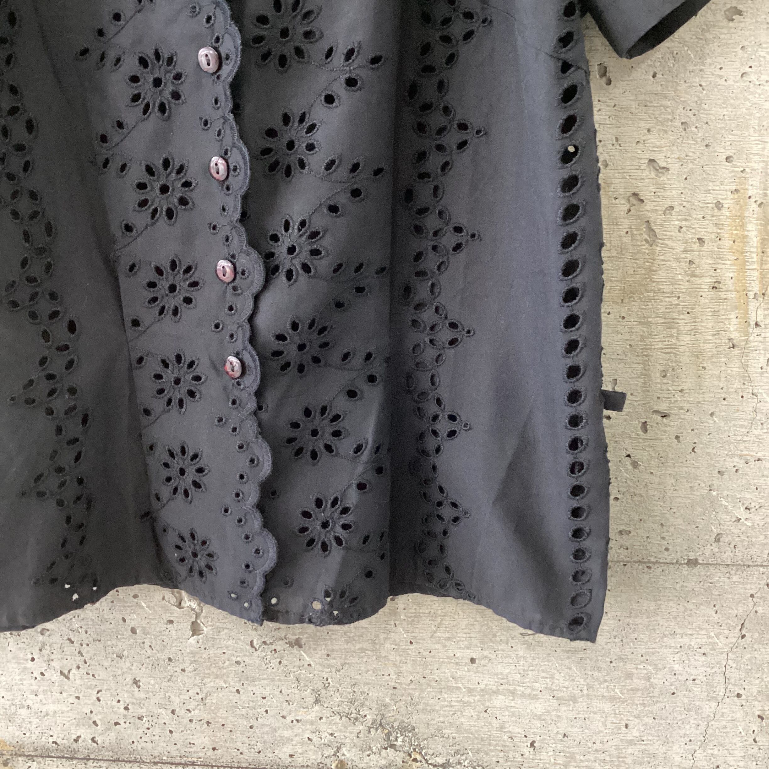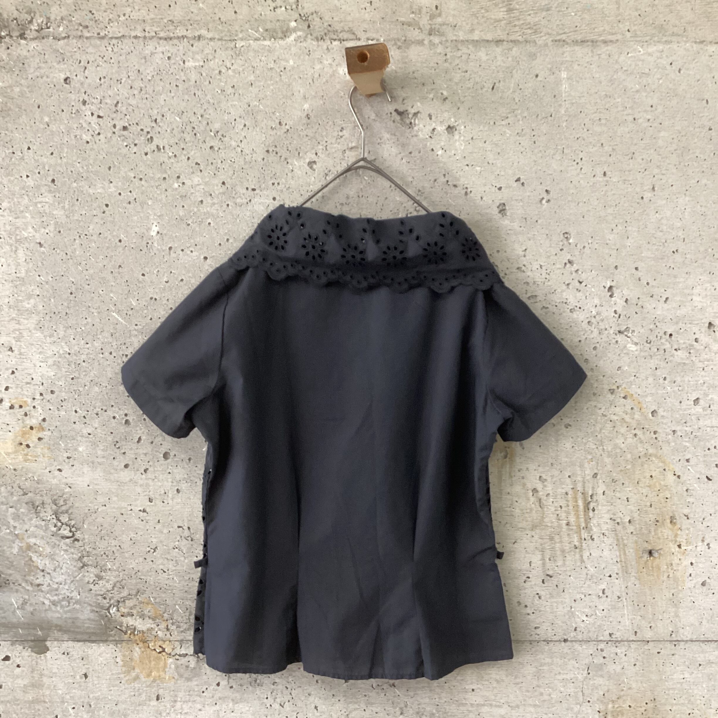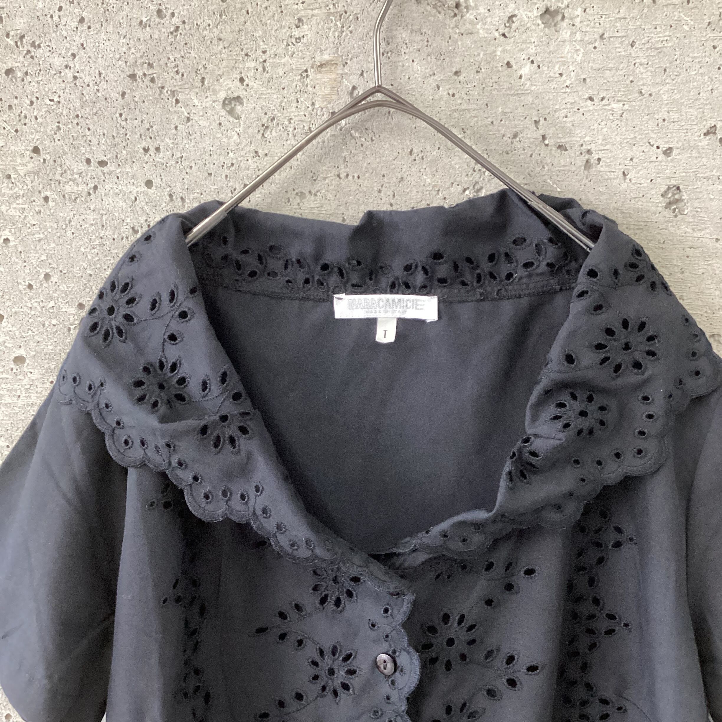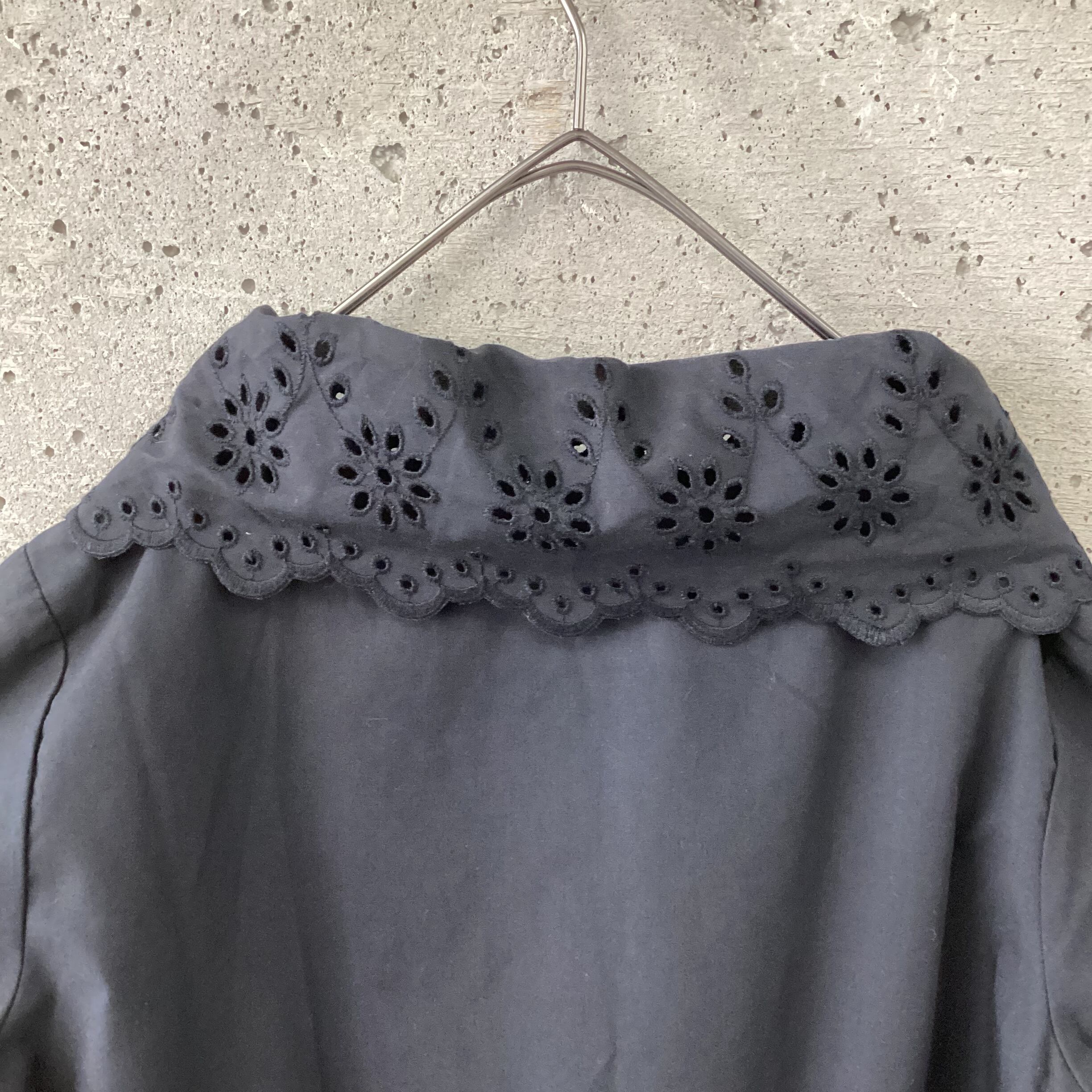 前身頃のみレース生地になっていて、カットワークレース部分から肌がのぞきます