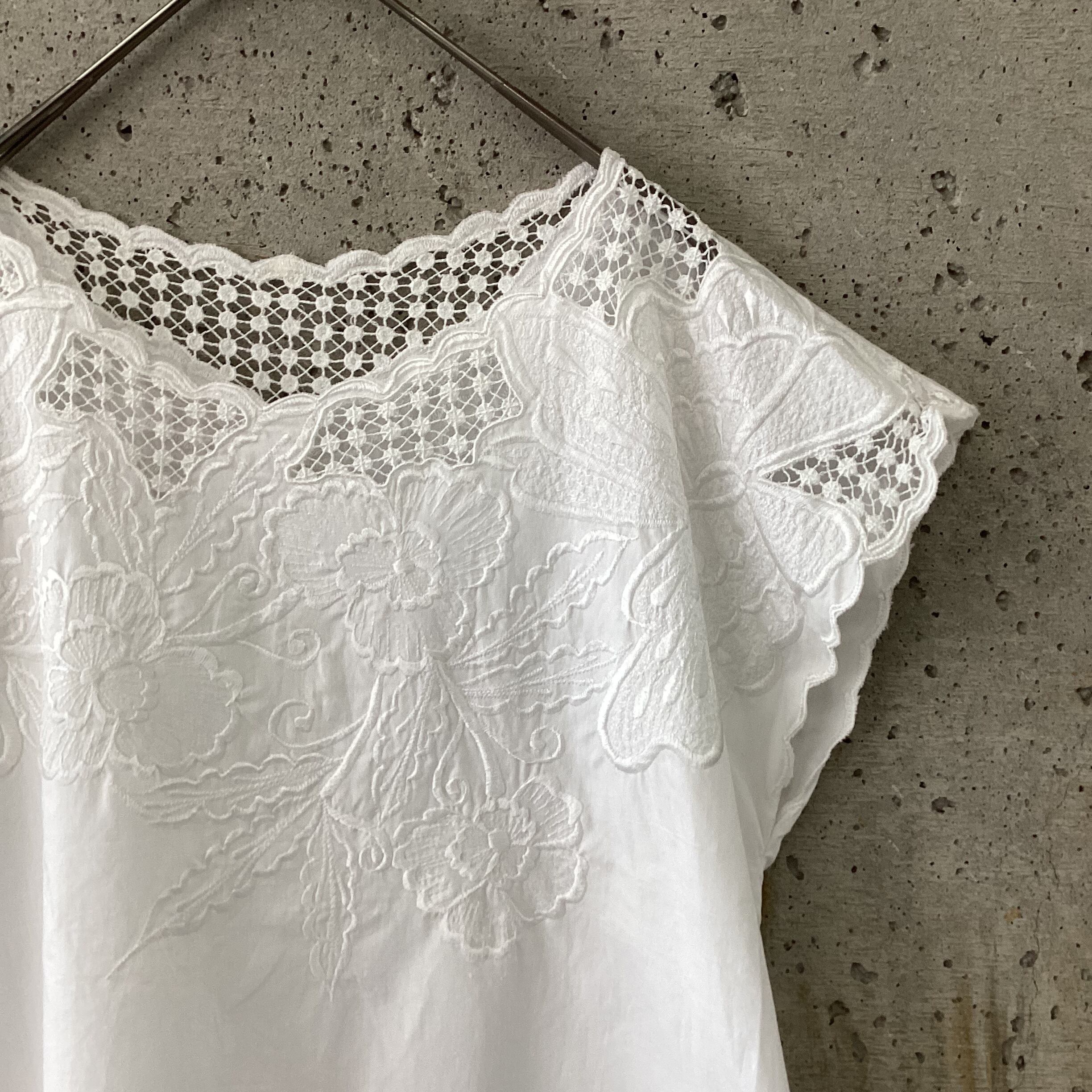 前はネックに沿って、後ろは縦のラインに刺繍が入っているのもポイントです