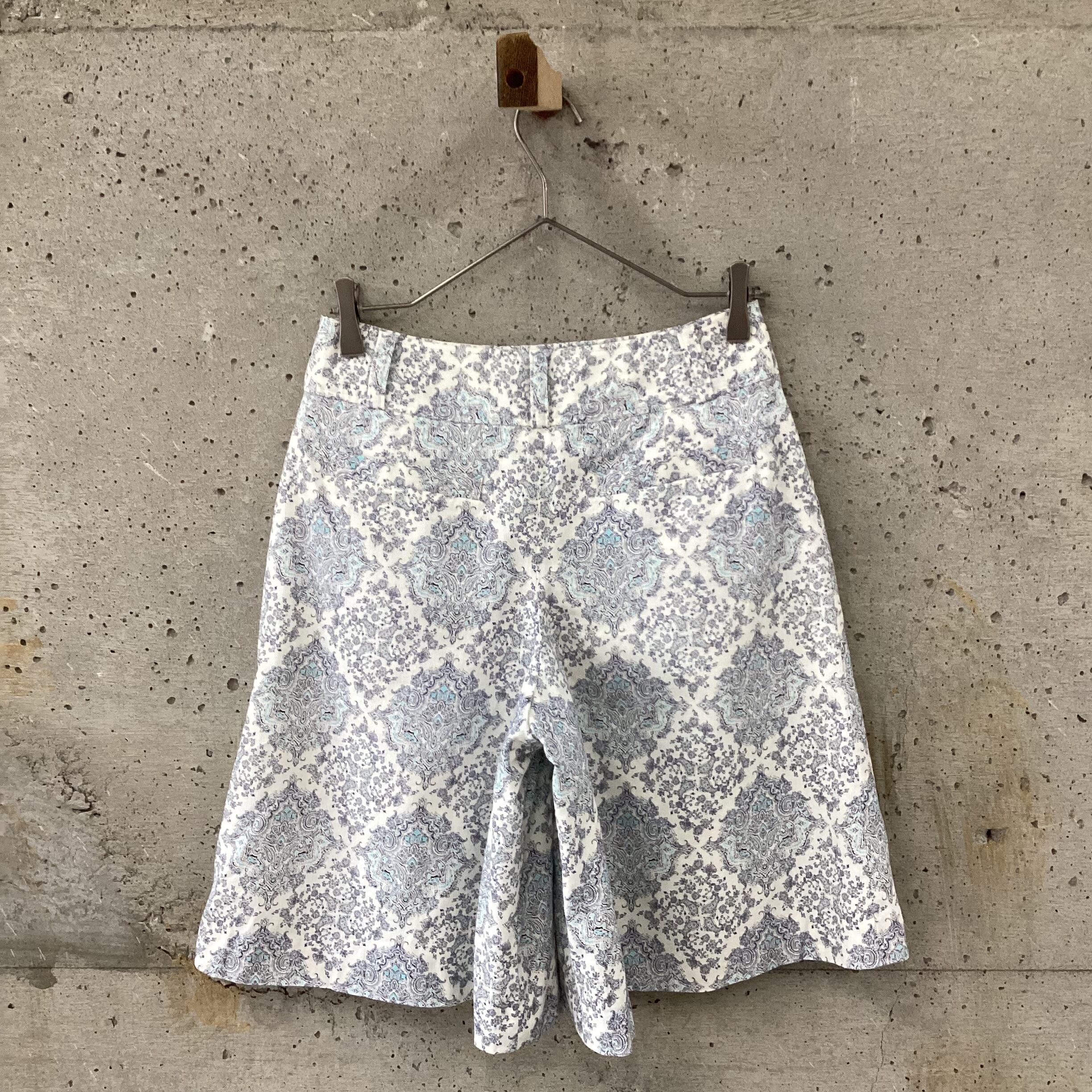 涼しげな配色の線の細い抽象的な柄がとても涼しげなショートパンツです