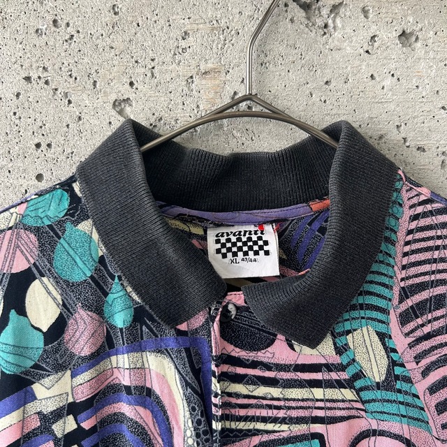 抽象的な模様の上に灰色でさらに別の抽象的な模様が描かれています。