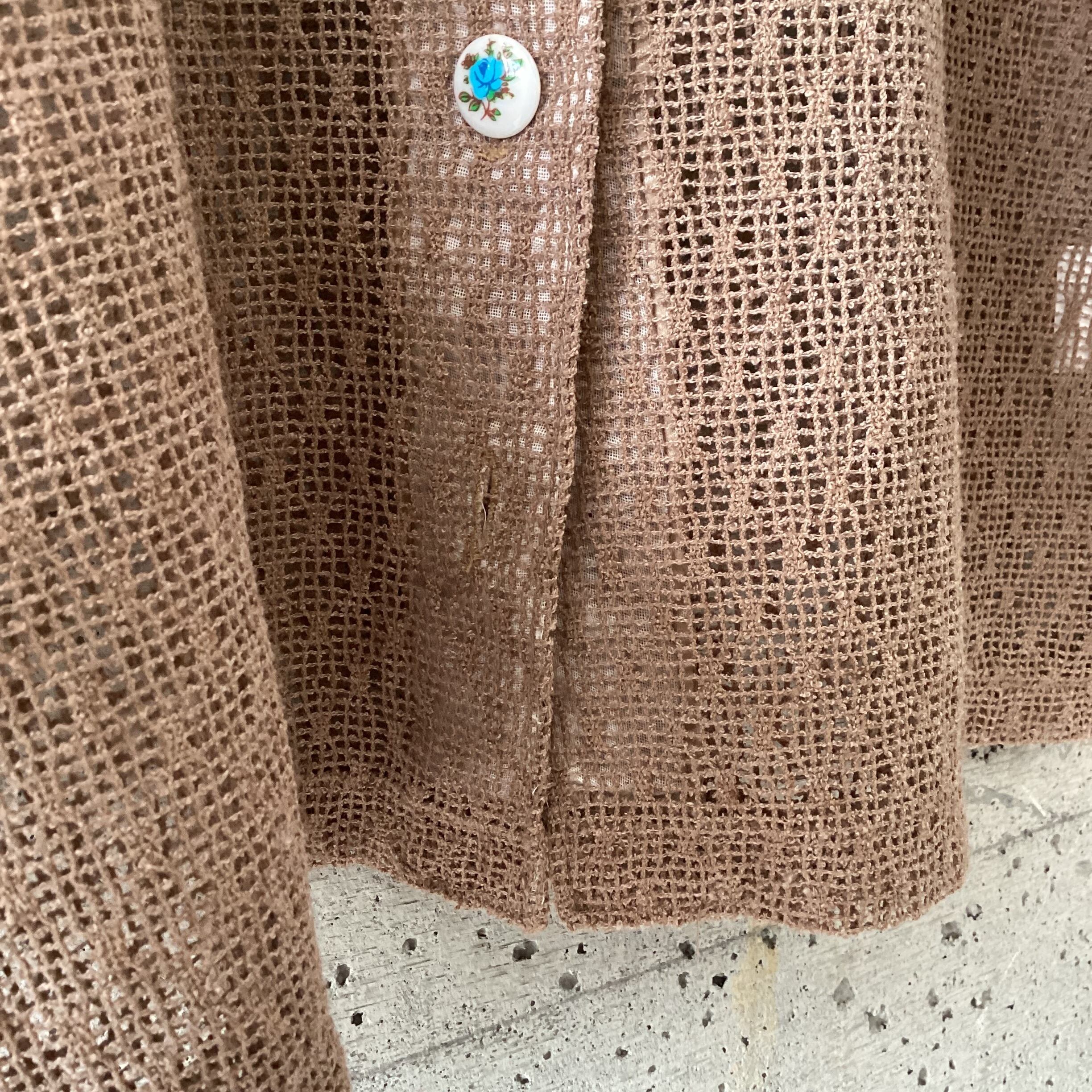 陶器で出来たような可愛いお花のボタンがポイントになっています