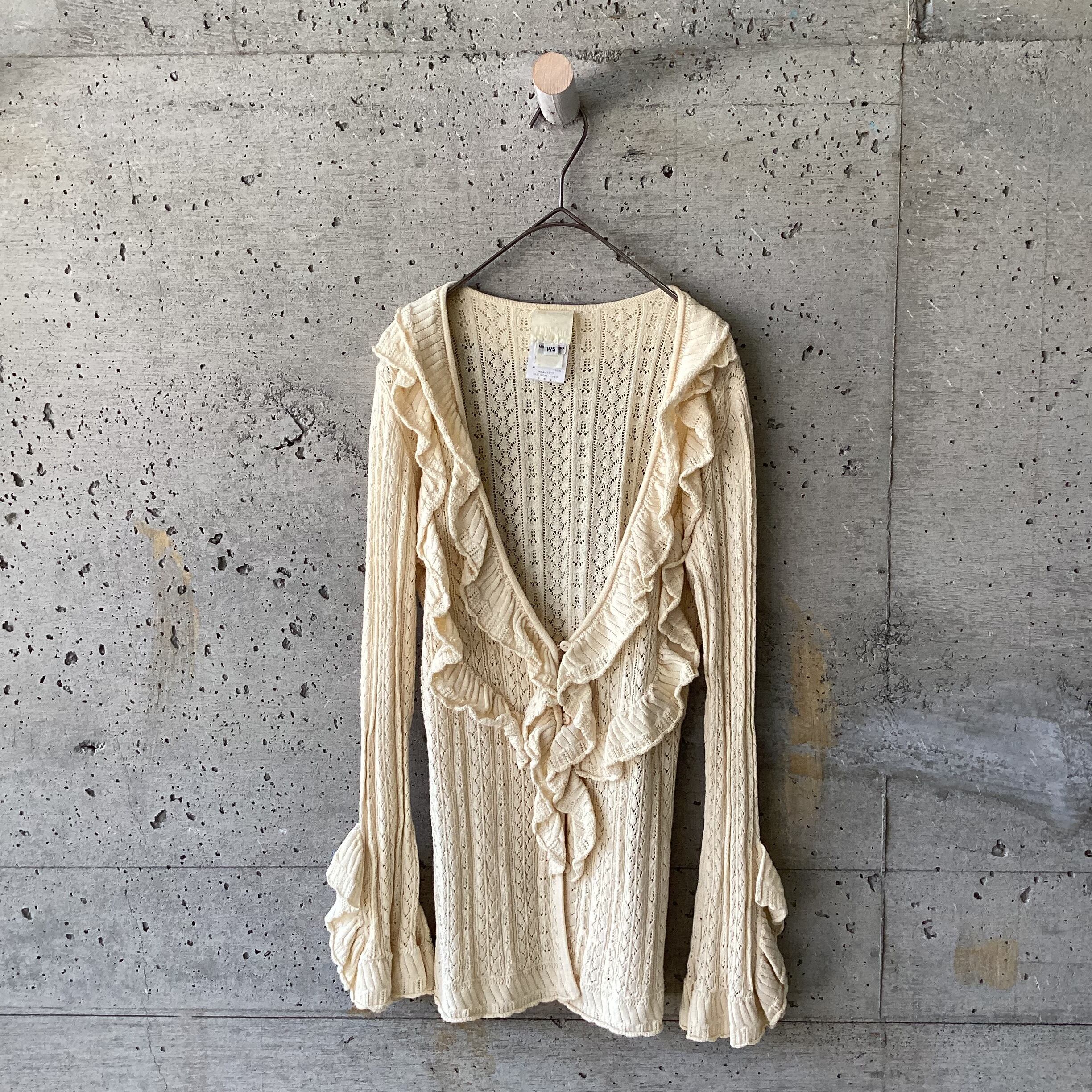 ボリュームのあるフリル部分とタイトな身頃部分のコントラストが美しいカーディガンです