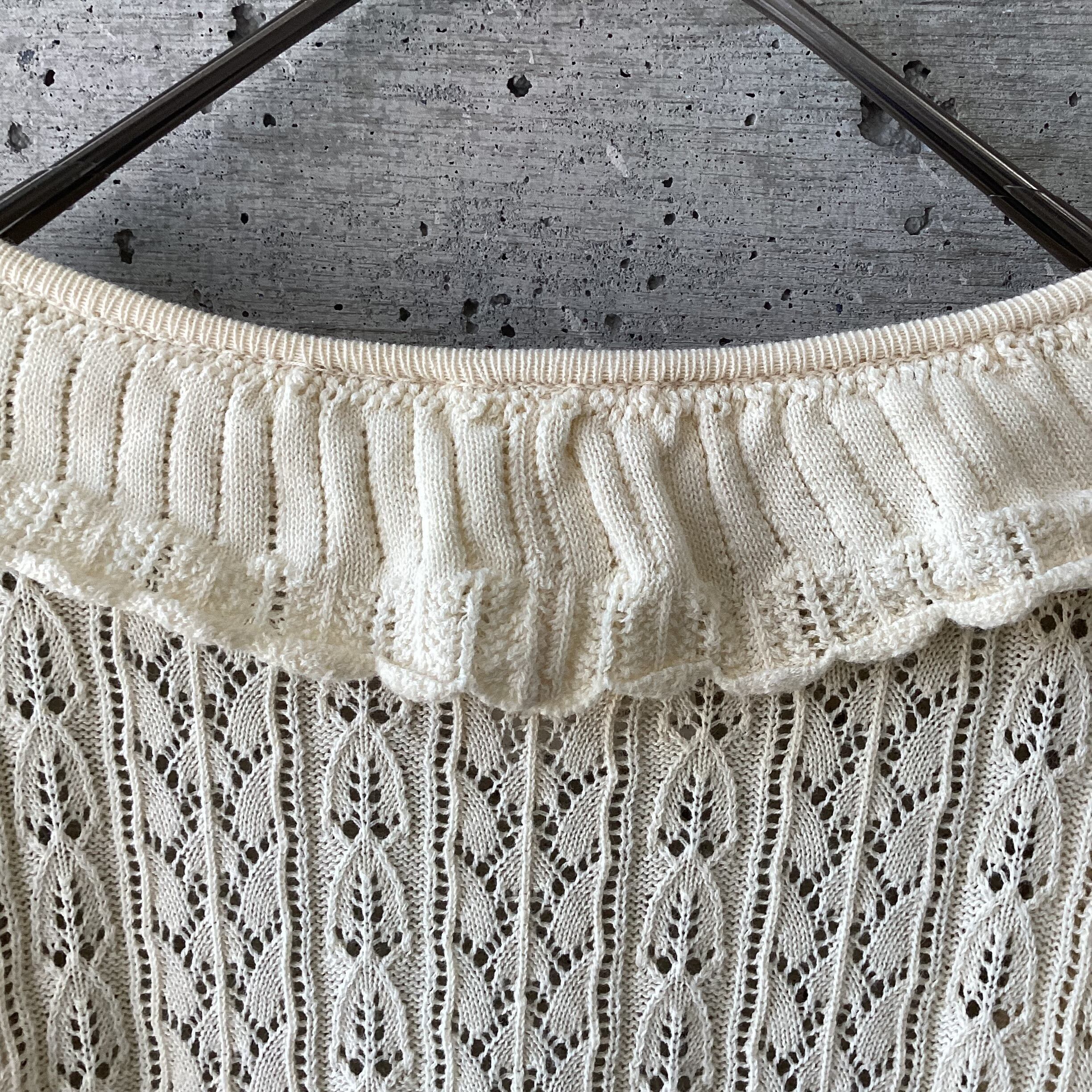 Frilled cotton knit cardigan