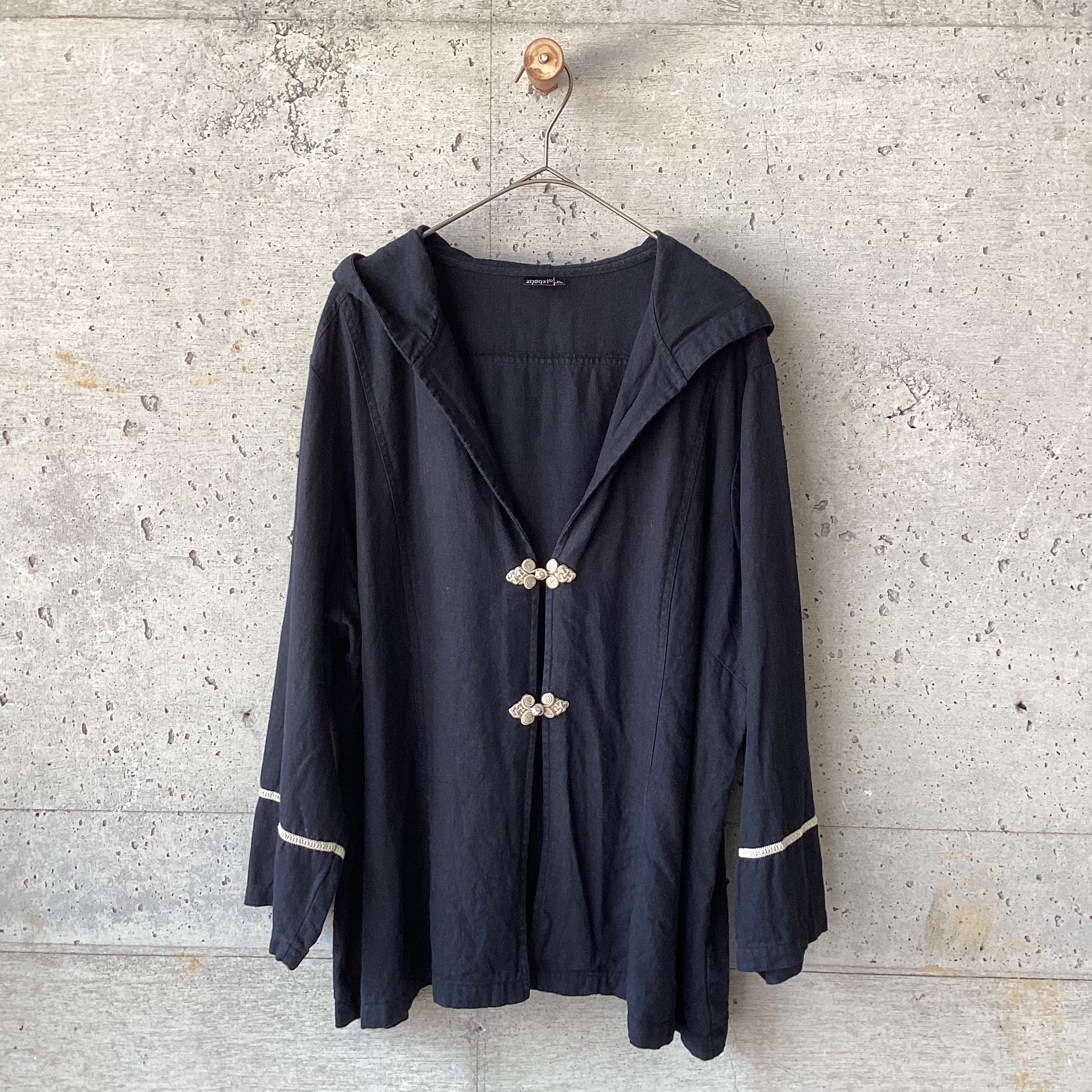 袖にはチャイナボタンと同じ色のコードの装飾があります。