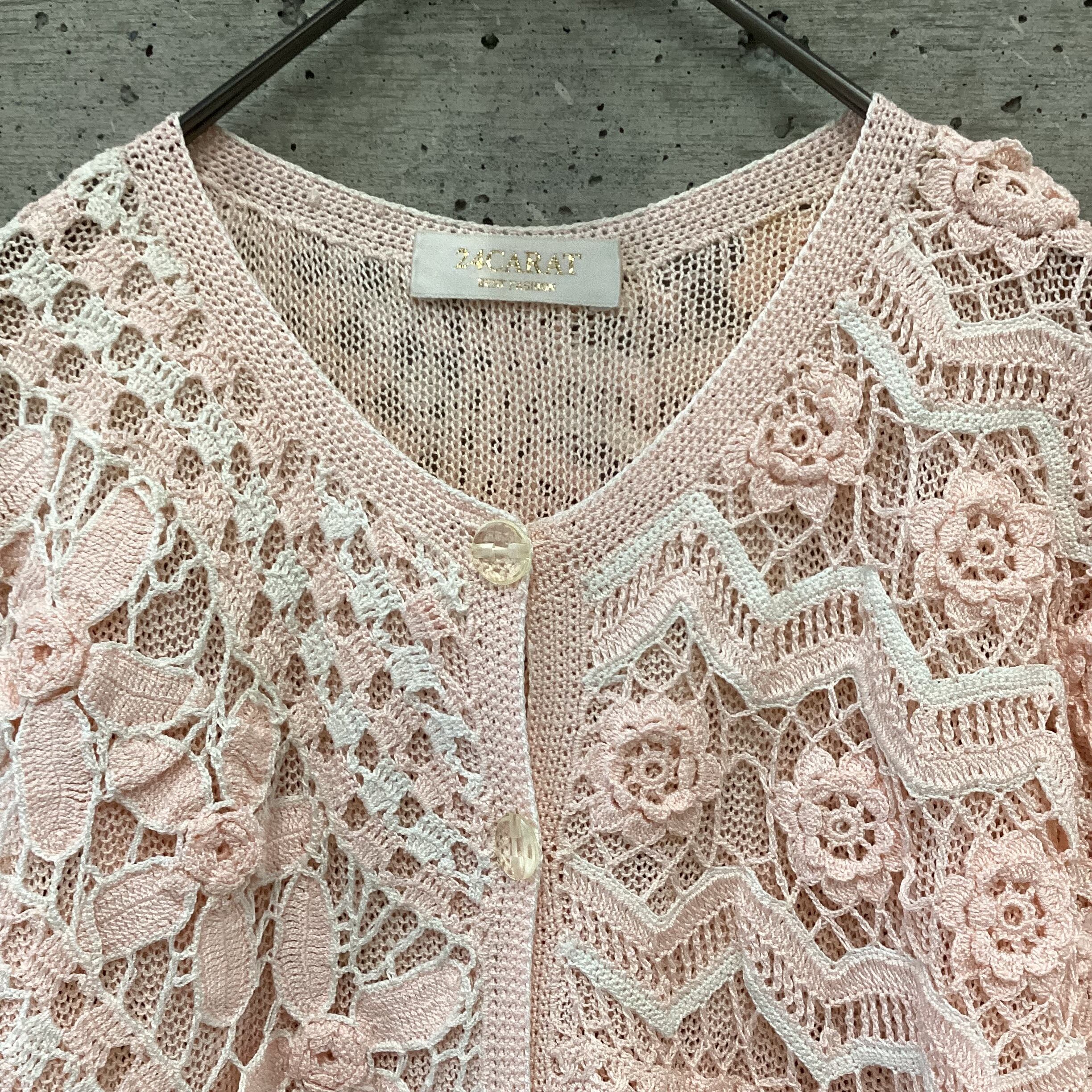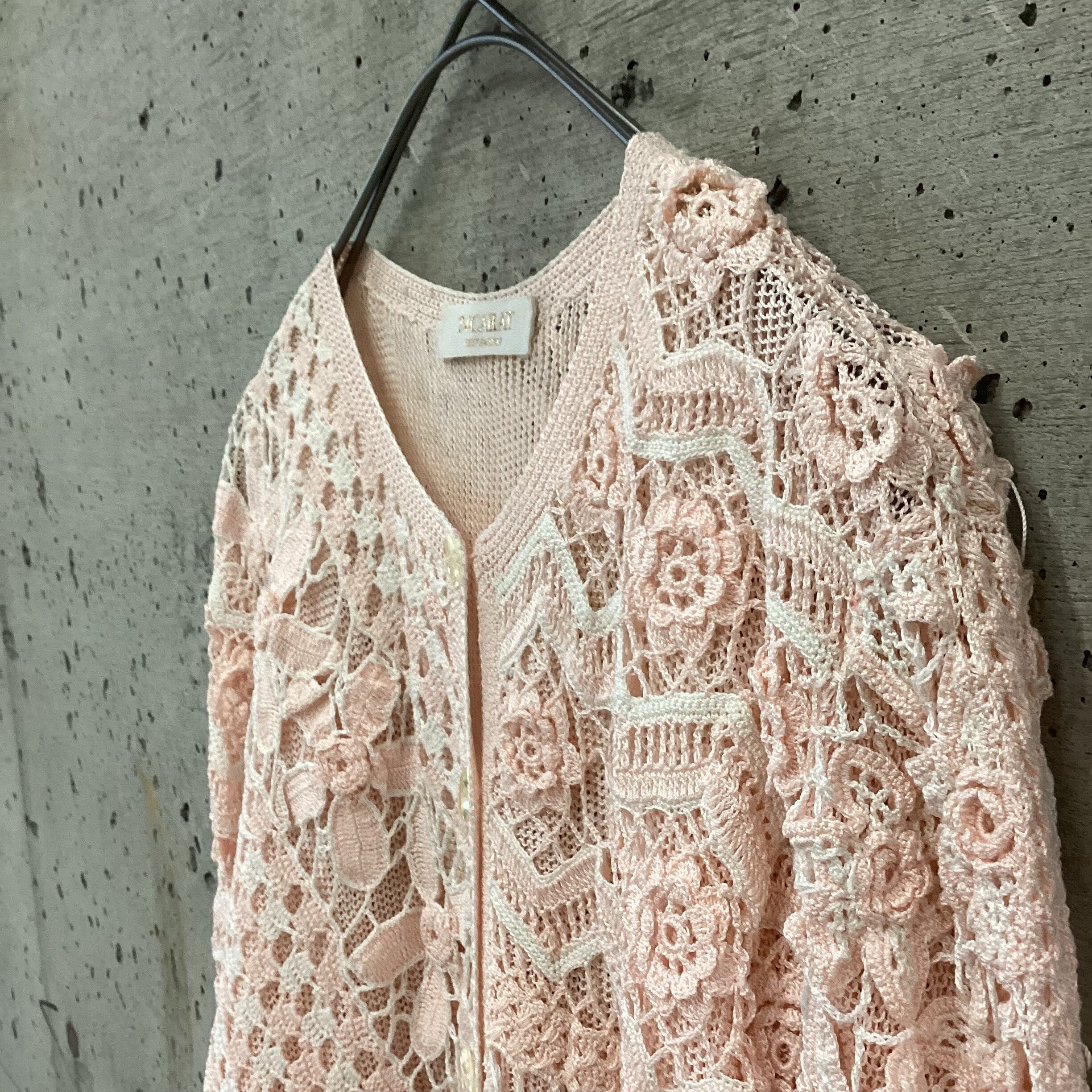繊細なモチーフがつなぎ合わされたニットガーディガンです。