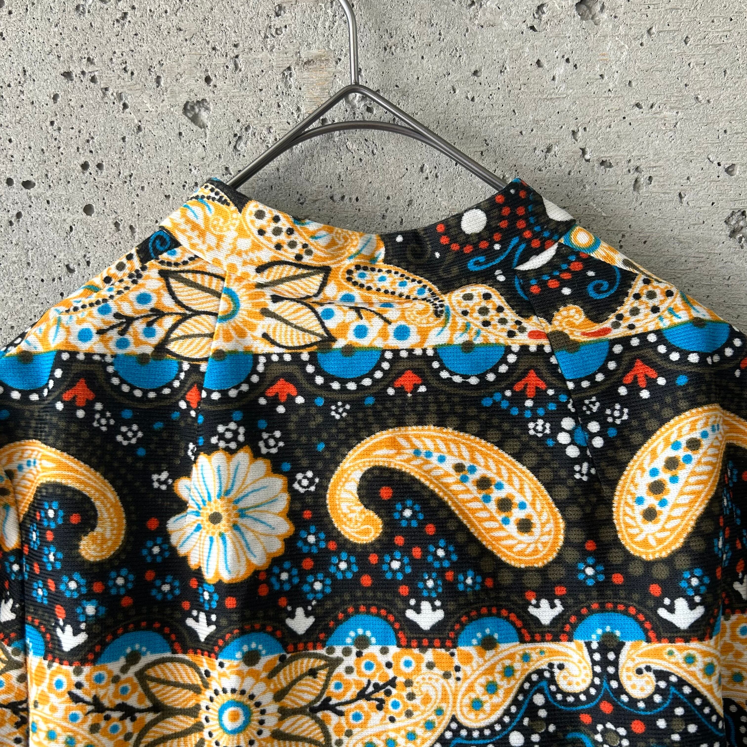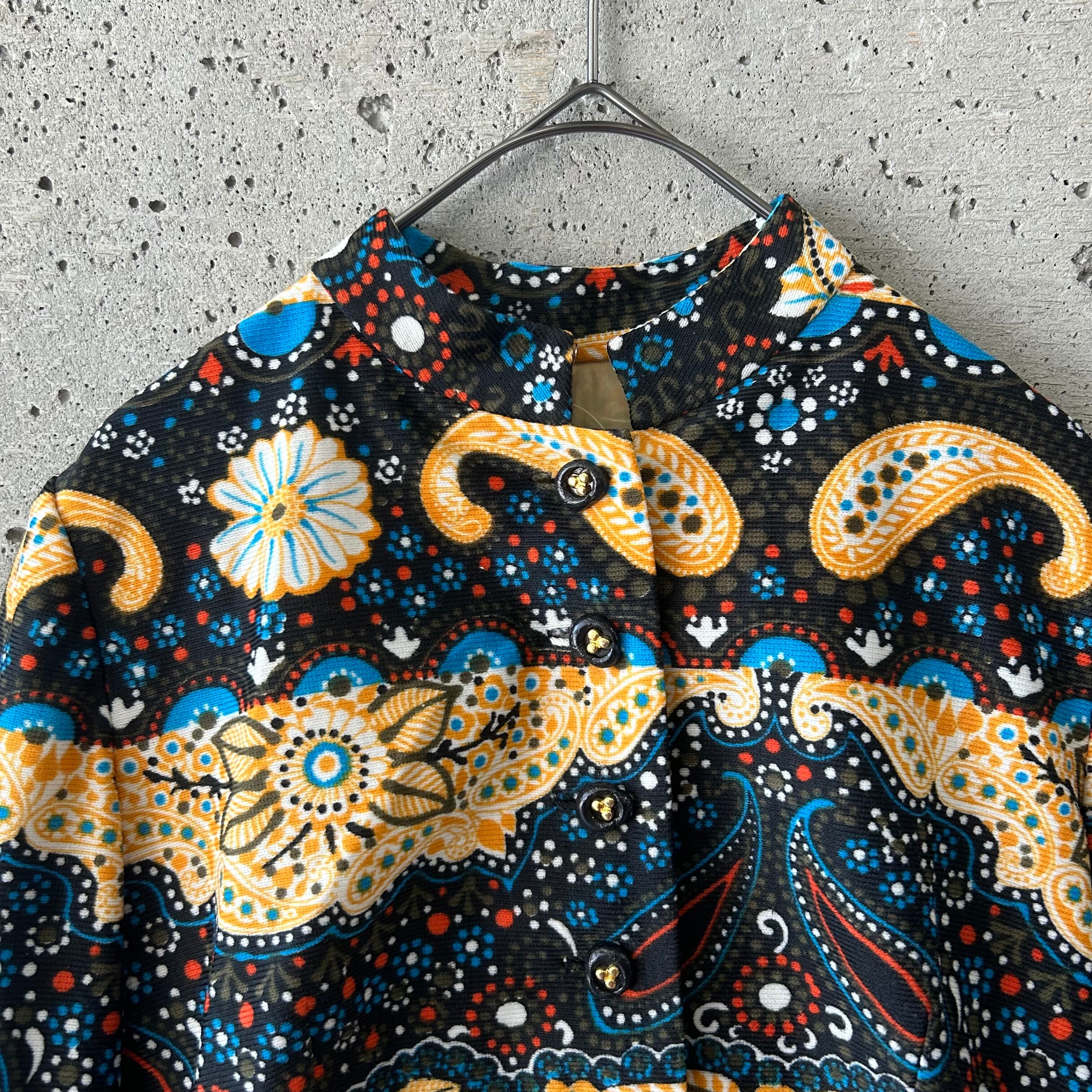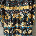 ネイビーをベースにカラフルな模様が入っているワンピースです。