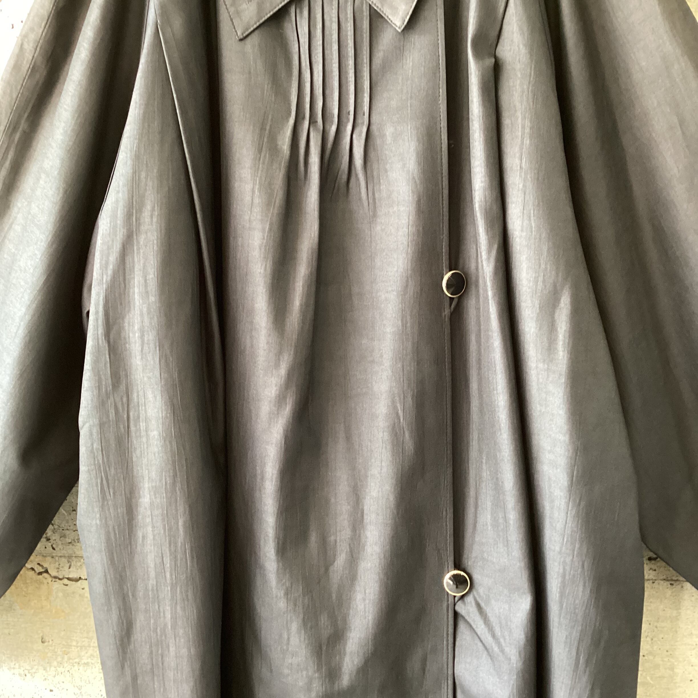 左寄りに付いたボタンや前ネック下の細かなタックなどがポイントになっています
