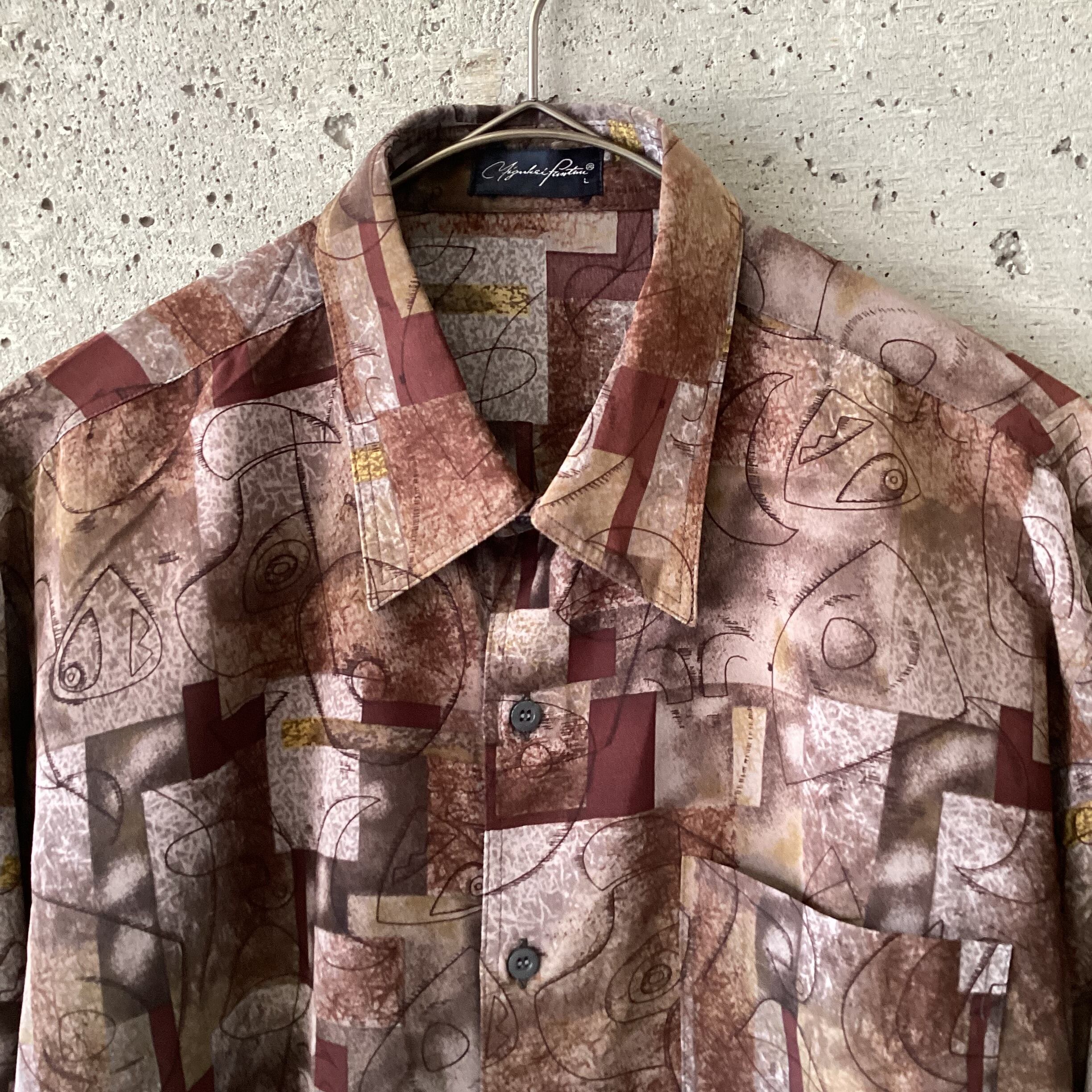 抽象的な絵とまだらな色が雰囲気のあるシャツです