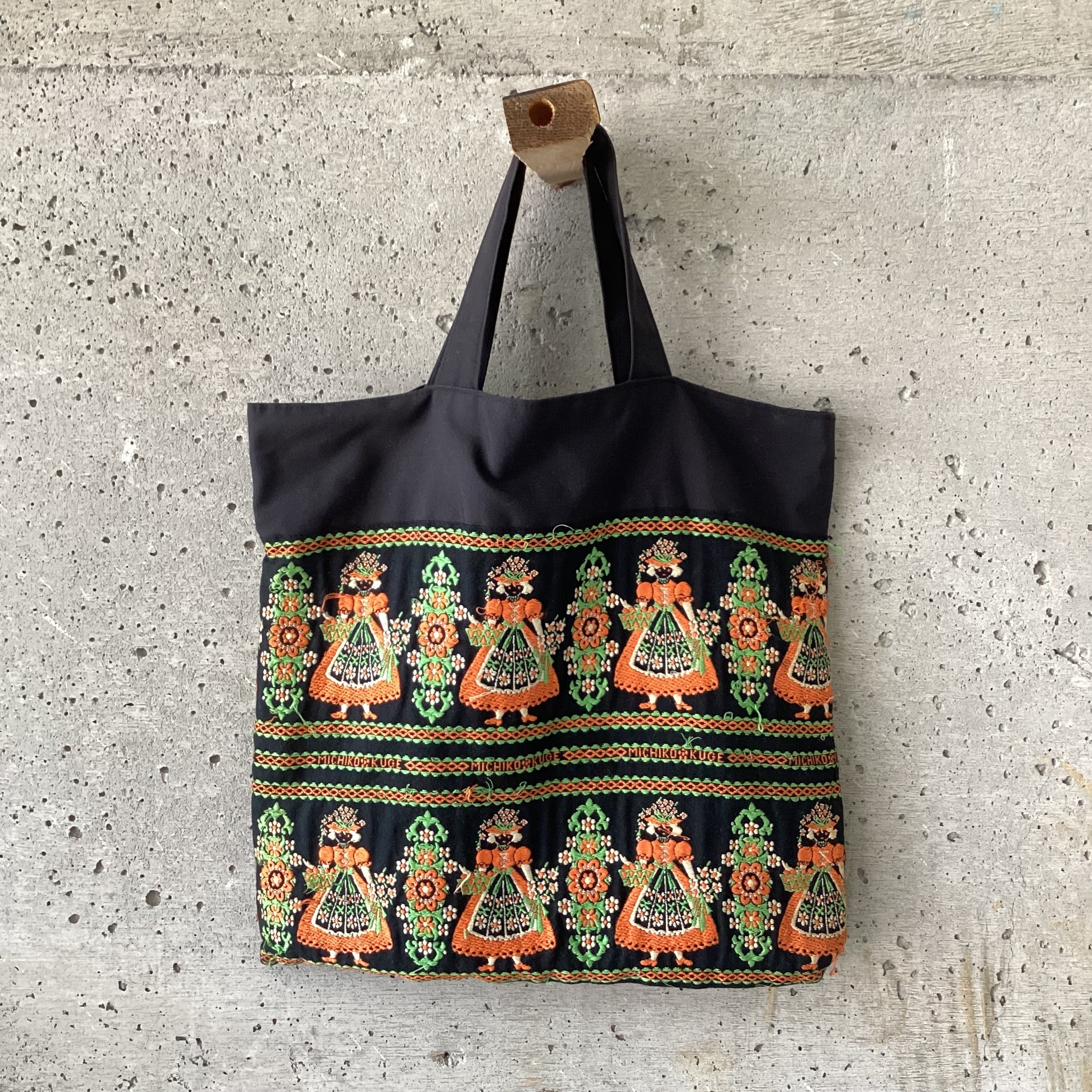 細かなヨーロッパの刺繍がハンドクラフト感あふれるトートバッグです