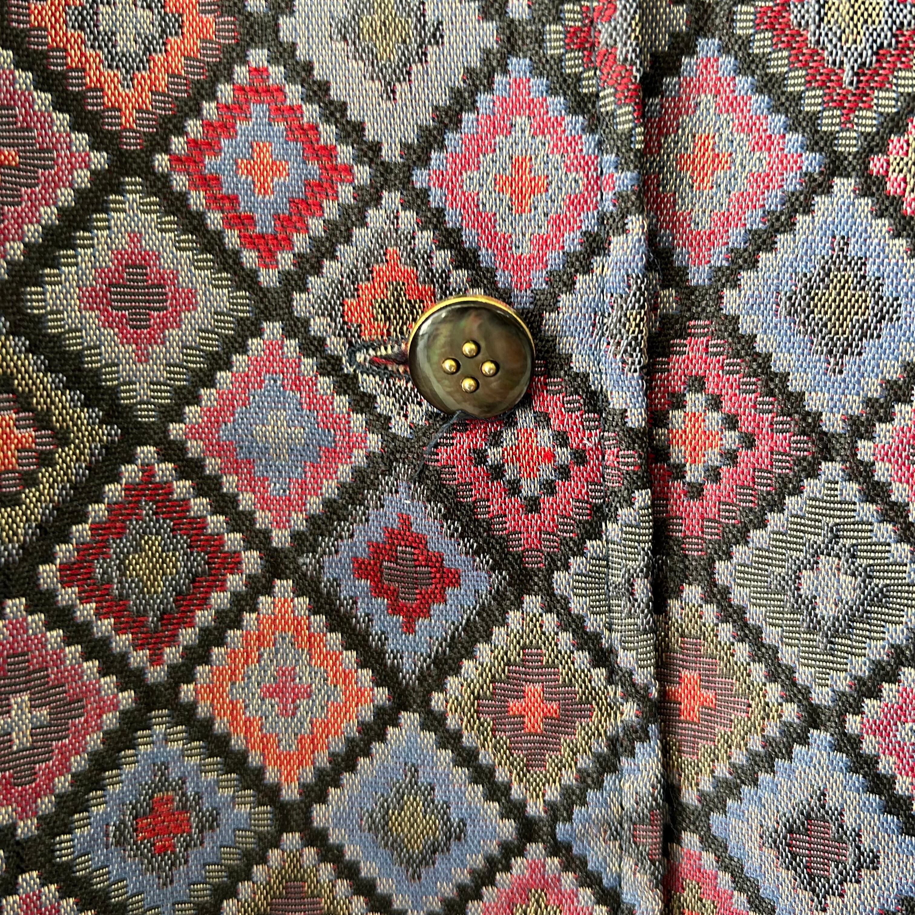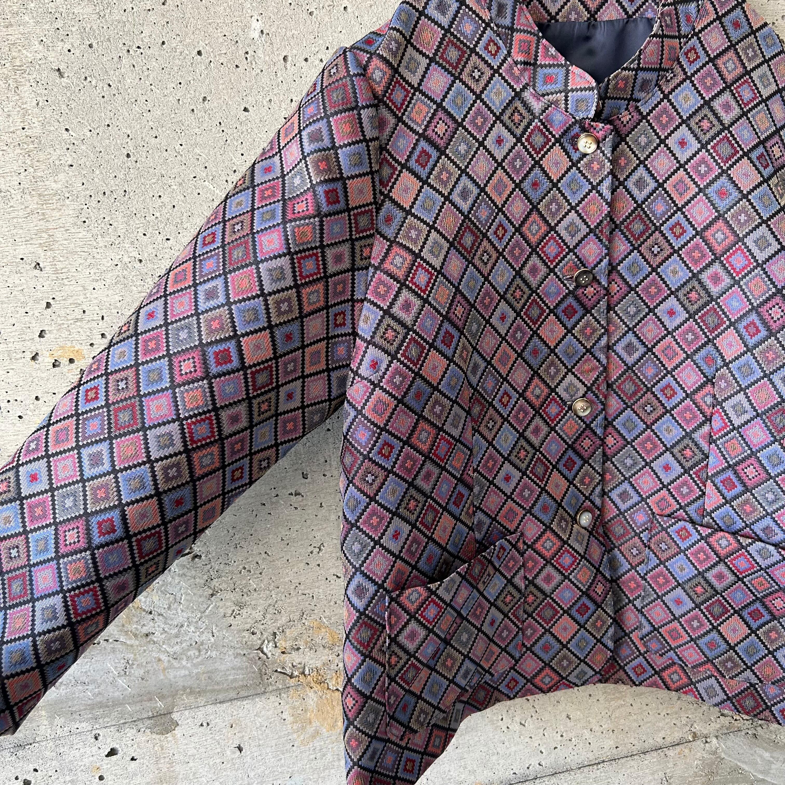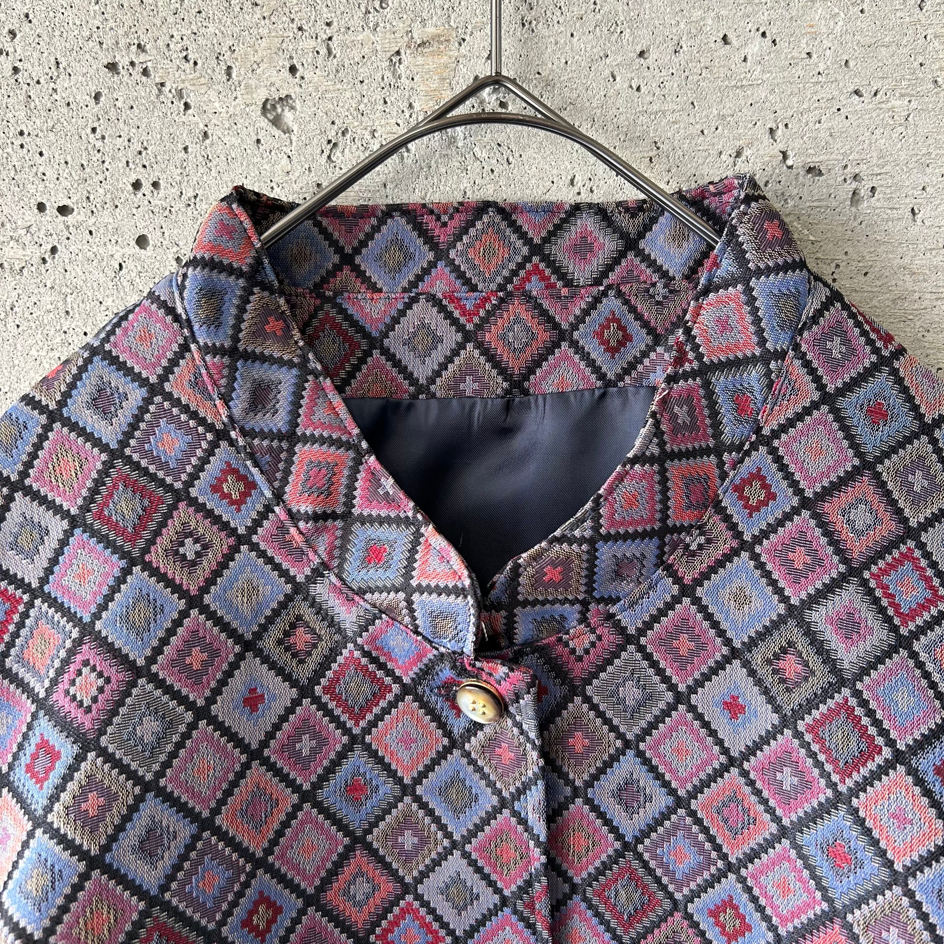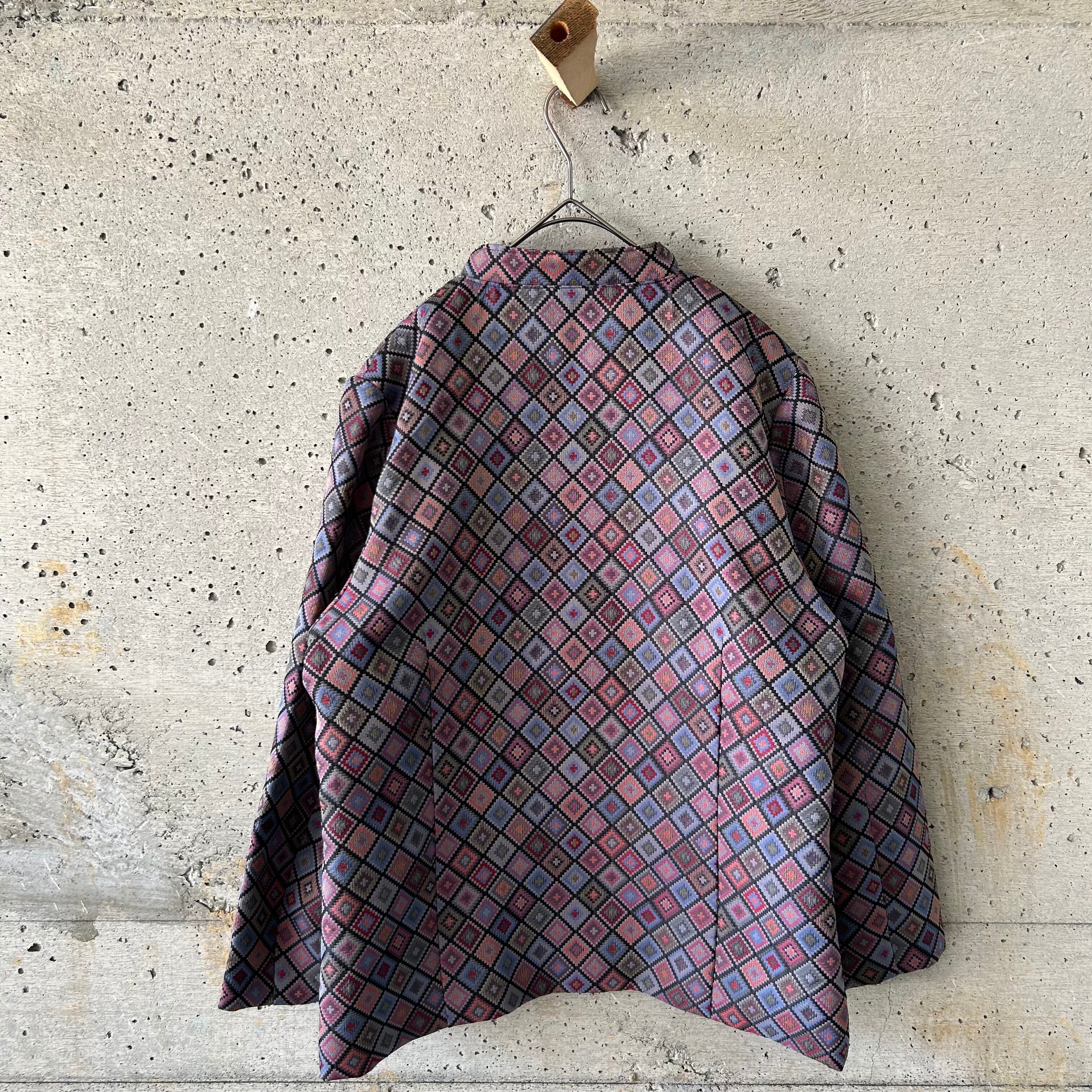 独特な模様が魅力的なスタンドカーラーのジャケットです。