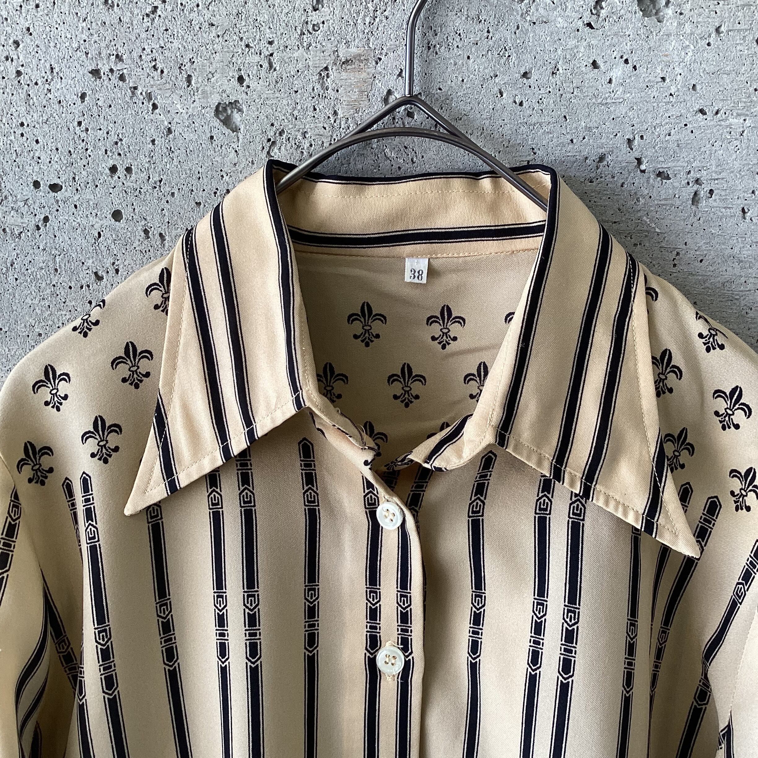 ベルトの形のストライプと百合の紋章の柄のシャツです