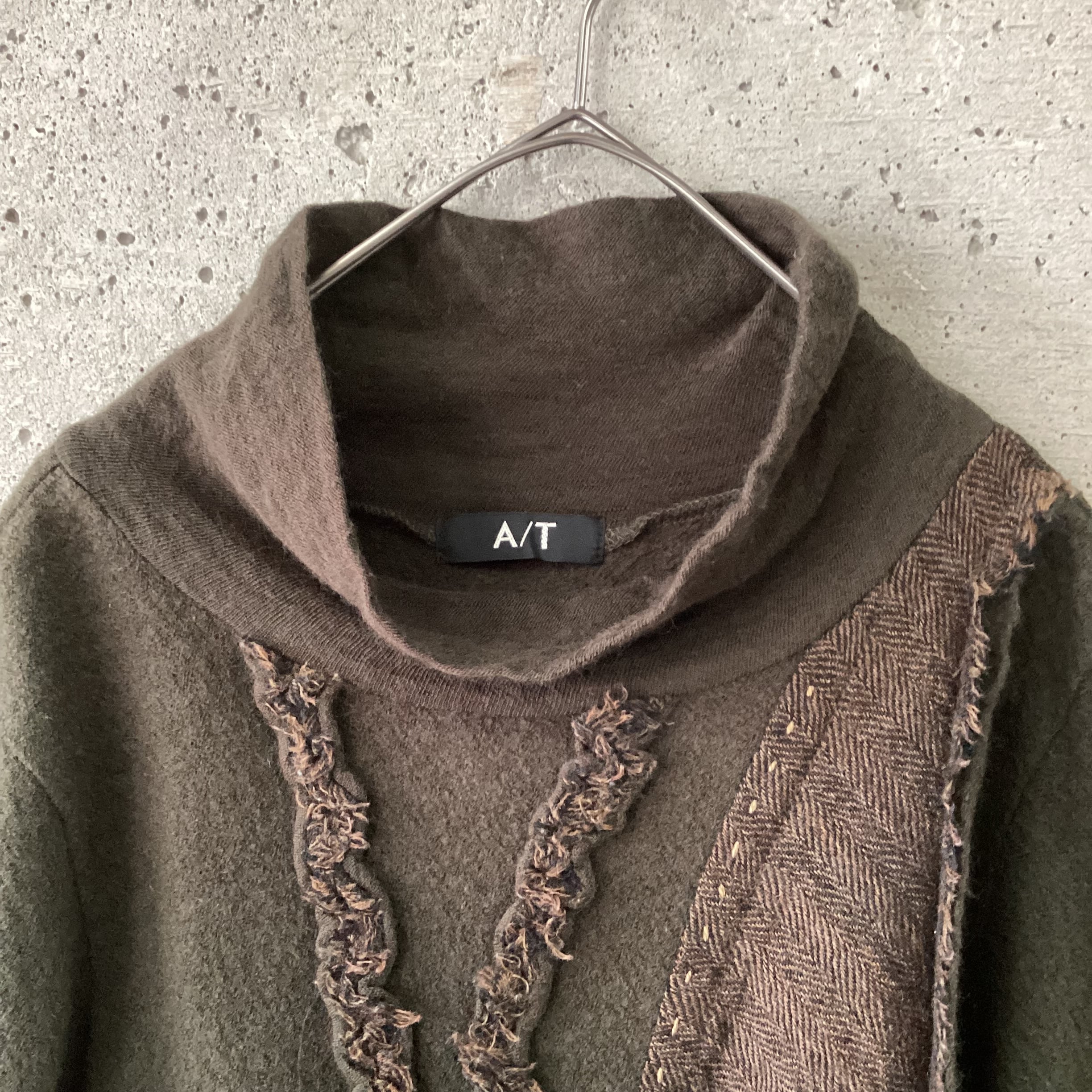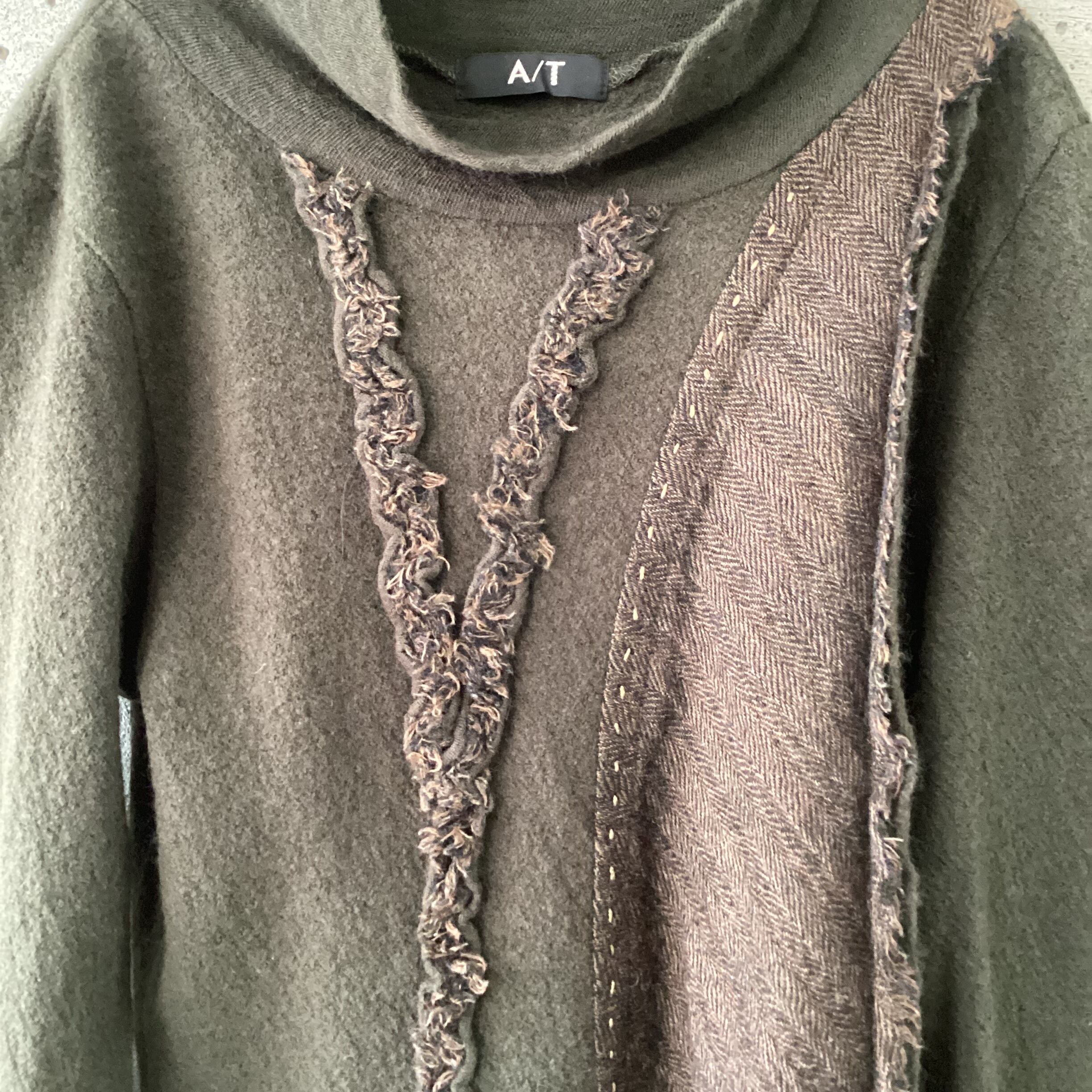 首の部分で切り替えがあり、タートルネックの部分には薄いストールのような生地が使われています。